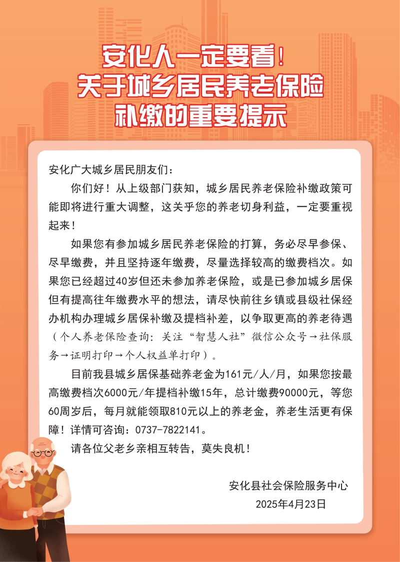 关于城乡居民养老保险补缴的重要提示