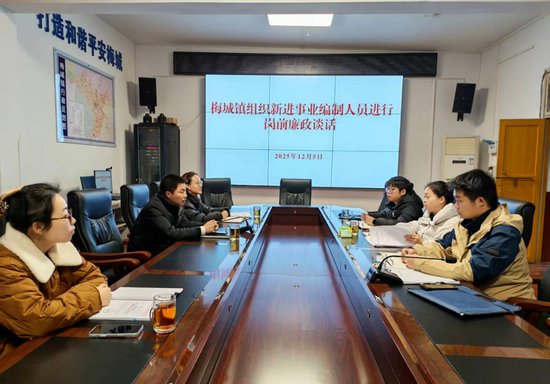▲12 月 5 日,梅城镇纪委对2025年度新进事业编制人员开展集体廉政谈话,引导年轻干部强化理论学习、提高思想站位,狠抓执行落实、勇于担当作为,知敬畏、存戒惧、守底线,扣好廉洁从政"第一粒扣子"。(图/文 李幕)