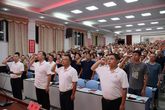 培训开始前,全体教师面对国旗庄严宣誓,表达对党的教育事业的忠诚。