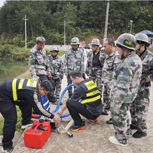 防灾救灾,关键在“防”;提升能力,重点在“练”。本次演练紧贴实战,设置洪涝灾害应对和森林防灭火响应两个环节。在洪涝灾害演练中,模拟水库水位持续上涨的险情,现场指挥部立即开展抢险工作。森林防灭火演练环节,专业人员首先讲解了抽水泵、灭火器等设备的使用方法,随后模拟因野外用火引发火情的处置。