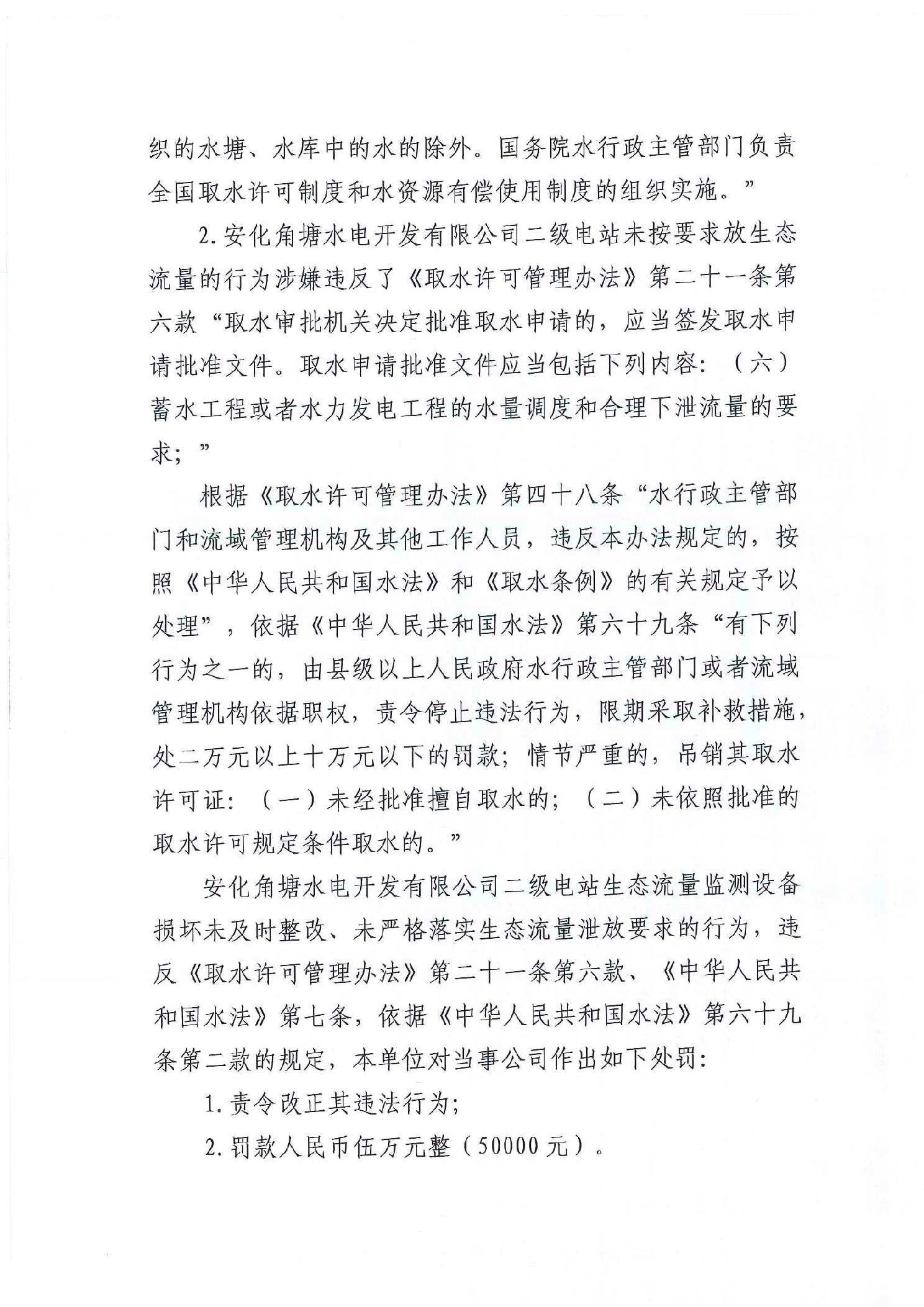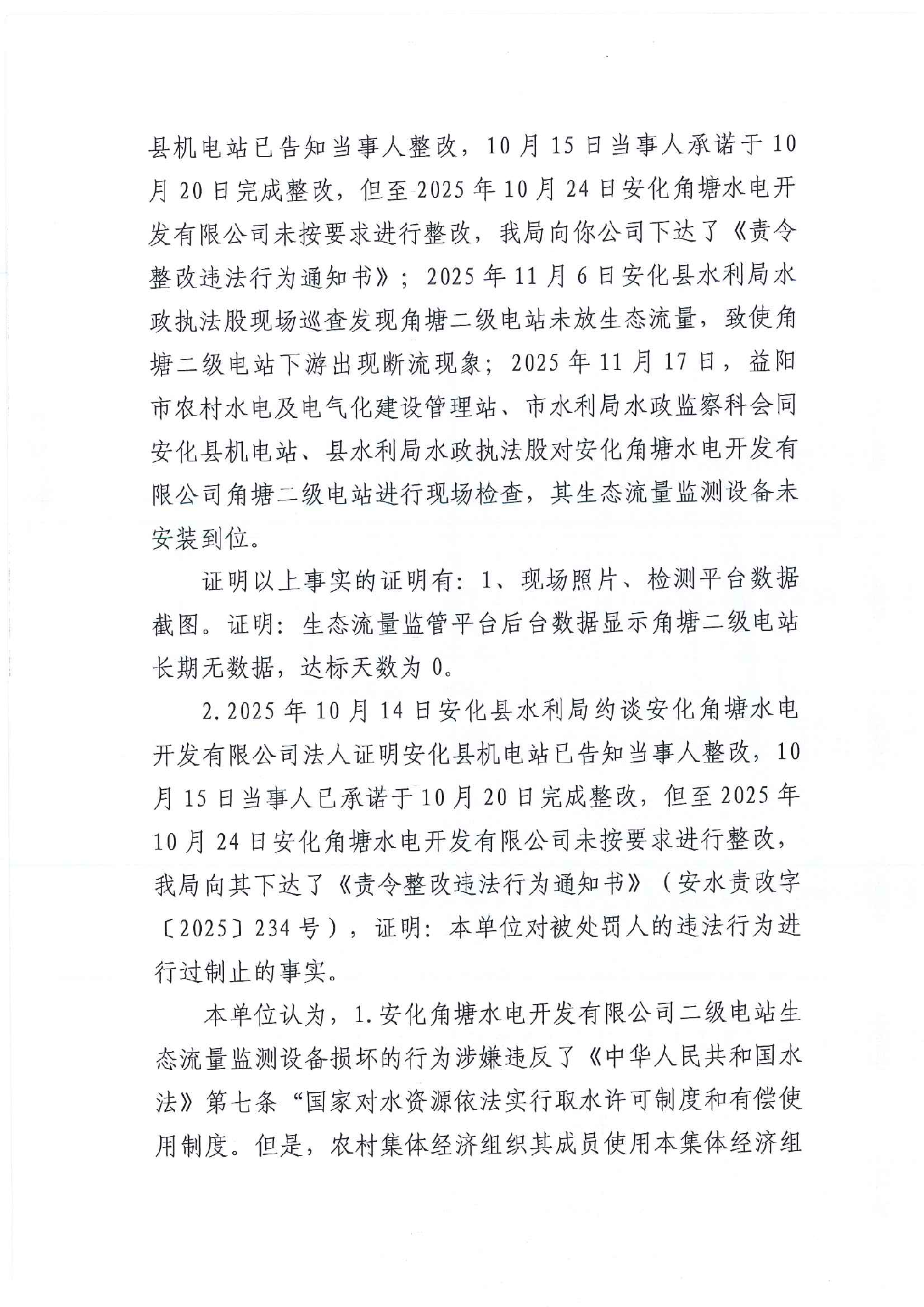 安化县水利局行政处罚决定书 安水罚决字(2026)2号