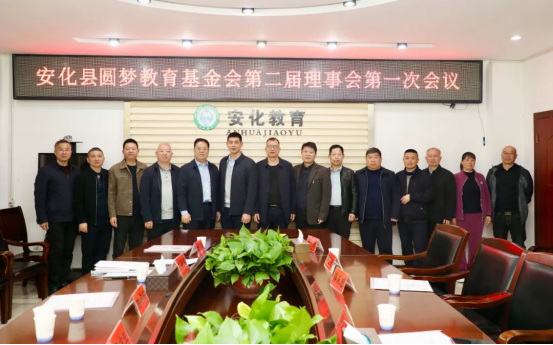 -top: 0px; margin-bottom: 0px; text-align: justify; line-height: 2.2;"> 全体参会人员合影 本网讯 4月2日,湖南省安化县圆梦教育基金会理事会第一届第十三次会议暨换届大会在安化县教育局圆满召开。益阳市教育基金会副理事长何湘旺、市教育基金会副理事长兼秘书长刘文凯;安化县人民政府党组成员、副县长莫超,安化县政协副主席、县工商联主席刘畅术,安化县教育局党组书记、局长陈羽成,安化县民政局党组成员、副局长刘红兵,安化县教育局党组成员、副局长刘周明等领导出席会议。