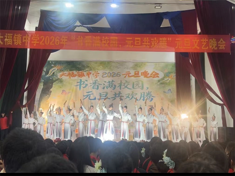 本网讯 12月30日,大福镇中学风雨球场内欢声笑语、掌声如潮,2026年“书香满校园,元旦共欢腾”元旦文艺汇演在此隆重举行。全校师生齐聚一堂,共同迎接新年的到来。