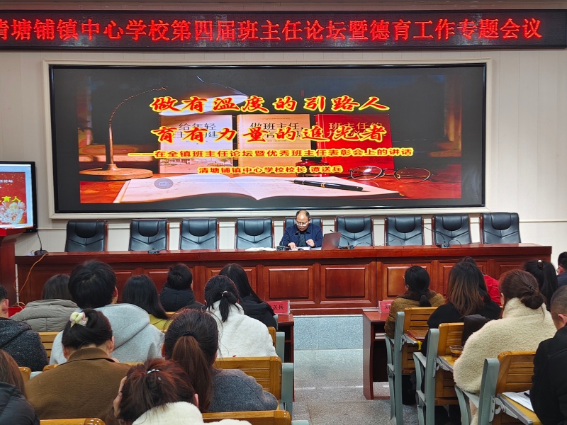 本网讯 12月30日,清塘铺镇中心学校在中学多功能厅成功举办第四届班主任论坛暨德育工作专题会议。中心学校机关人员、各校负责人、全镇班主任及青年教师等共计190多人参会。 本届论坛以“五育融合 智慧育人——新时代班主任的创新与实践”为主题,旨在搭建交流平台,激发班主任的创新活力与协作精神。活动对全镇评选出的23位优秀班主任进行了集中表彰,并推选黄晓云、刘泽群等10位优秀班主任代表进行现场经验分享。发言代表围绕班级管理、家校协同、学生综合素养提升等焦点,运用PPT结合生动案例进行了限时交流,充分展现了新时代班主任的育人智慧与实践成果。 该中心学校党总支书记、校长谭送兵以《做有温度的引路人,育有力量的追光者》为题,阐释班主任工作的核心理念与实践方向:一是以仁爱为底色,做学生心灵的守护者;二是以责任为担当,做教育质量的筑基者;三是以创新为动力,做教育改革的先行者;四是以成长为追求,做幸福教育的践行者。他强调,各校要积极推动“经验”变“标准”,促进工作规范化;加强促进“交流”成“常态”,构建成长共同体;着力引领“坚守”向“卓越”,追求职业幸福感。 据悉,本次论坛还开展了相关论文征集与评选,鼓励全体班主任积极总结、提炼育人经验。活动有效发挥了优秀班主任的示范引领作用,为加强班主任队伍建设、推动全镇各校德育工作高质量发展注入了新动力。 初审初校:吴雄 复审复校:刘新世 终审终校:谭送兵