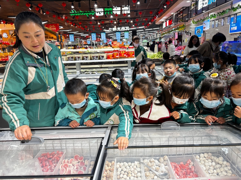 进入超市,孩子们在教师与家长志愿者的引导下分组行动,手持购物清单的他们瞬间变身“小当家”,穿梭于各式货架之间。有的对照清单仔细搜寻对应商品,有的认真查看商品价格标签,还有的主动向售货员询问商品摆放位置。孩子们彼此商量探讨、比对商品价格,慢慢习得理性消费的小技巧,满满的成就感洋溢在一张张稚嫩的笑脸上。大班龙惊奇小朋友兴奋分享购物心得:“我学会了看价格牌、还要买健康的食品!”