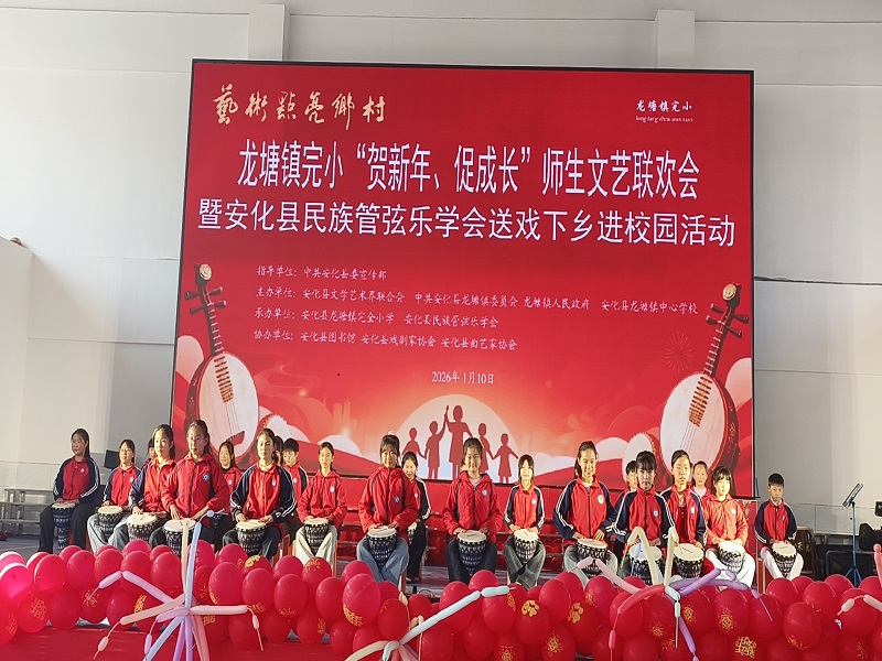 本网讯 1月10日下午,“艺术点亮乡村——龙塘镇完小‘贺新年、促成长’师生文艺联欢会暨安化县民族管弦乐学会送戏下乡进校园”活动在新校区风雨球场举行。