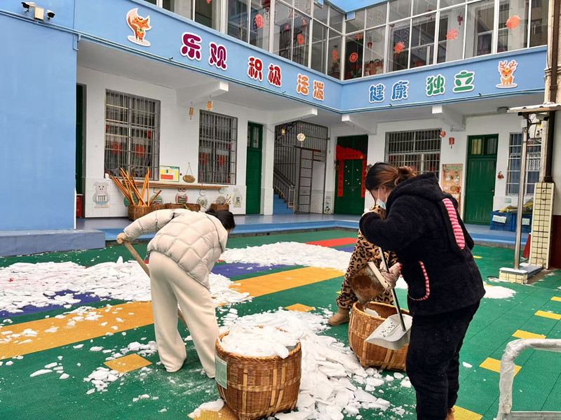 本网讯 1月22日,仙溪镇中心幼儿园的操场被积雪覆盖,为保障孩子们入园后的户外活动安全,幼儿园迅速组织教职工开展了一场暖心的除雪行动。 上午九点,老师们早早来到幼儿园,手持铁锹、扫帚、竹篮等工具,在操场上分工协作。有的老师负责铲雪,有的负责清扫、有的负责将积雪装入竹篮清运。尽管天气寒冷,但大家干劲十足,欢声笑语与铁锹铲雪的声音交织在一起,让原本清冷的校园充满了暖意。 此次除雪行动不仅及时清除了操场的积雪,消除了安全隐患,更在过程中传递了团结协作的精神,为孩子们树立了榜样。幼儿园也将持续关注天气变化,做好各类安全防护工作,用实际行动守护孩子们的快乐童年。 初审出校:姚靓 复审复校:黄海雄 终审终校:贺妮