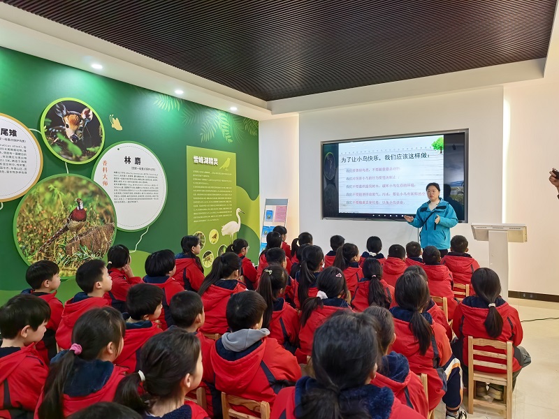 本网讯 3月30日,黄沙坪完小三、四年级学生走进黄沙坪雪峰湖湿地科普宣教中心,开展"守护飞羽精灵,共绘生态画卷"观鸟周科普研学活动。 在宣教馆内,同学们依次参观了湿地鸟类展厅,通过图文展板和实物标本,了解各类鸟儿的形态特征与生活习性。随后,大家观看了鸟类保护宣传视频,聆听了主题讲座,对家乡湿地的鸟类资源有了更深的认识。 最令同学们期待的,是前往黄沙坪观鸟台的实地观测环节。在老师的指导下,大家分组使用望远镜,静静观察远处水面上的白鹭、枝头跳跃的小鸟,认真记录下鸟儿的形态与动态。观测过程中,同学们相互交流发现,现场气氛活跃而有序。"我最喜欢在观鸟台用望远镜看白鹭,它飞起来的样子太美了!"三年级学生吉思菡兴奋地说道,"我把它画在了记录手账里,写一篇观察日记。" 安化县林业局自然保护地相关负责人何亮鑫介绍,雪峰湖国家湿地公园有中华秋沙鸭、斑嘴鸭、绿翅鸭、小䴙䴘等多种鸟类,特别常见的是白鹭。 该校主要负责人表示本次活动将课堂延伸至大自然,让学生在真实情境中观察、体验,不仅增长了知识,更激发了对家乡生态的关注与热爱。学校相关负责人表示,今后将继续依托本土场馆资源,开展更多科普实践活动,让学生在行走中学习,在体验中成长。 初审初校:蒋霞 复审复校:邓慧 终审终校:刘颖