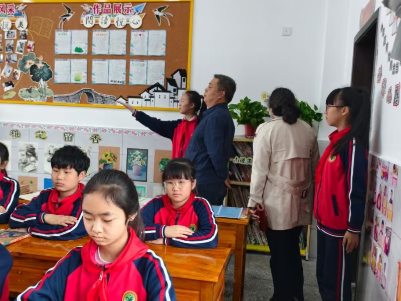 本网讯 4月15日,安化县教育局基教股副股长龚素芬、刘日光等一行深入大福镇完全小学,开展“书香校园”创建工作验评,对学校书香文化建设进行全面指导与评估。 验评组首先观看学校宣传片,听取该校教导主任黄红关于书香校园创建工作汇报,详细了解学校在制度建设、阅读阵地、教研教学、师生共读、家校共育及校报文化等方面的扎实举措与显著成效。随后,验评组兵分两路,一组细致查阅创建档案资料,另一组实地走访新老校区,查看书香班级2004班、图书馆、阅览室及校园公共图书角,沉浸式感受校园浓厚书香氛围。验评组对学校工作给予充分肯定,并提出优化意见:明确主题布设,融合德育与心理健康教育;规范图书管理与借阅登记,及时更新图书系统、清理不适宜读物;完善功能室使用,提升资料规范性,增强学生自豪感与归属感。 该校负责人表示,将以此次验评为契机,认真落实指导意见,坚持书香与德育并重,持续优化阅读环境、创新活动载体、完善管理机制,让书香浸润每一位师生,奋力打造县域书香育人标杆。 初审初校:姚俊 复审复校:黄红 终审终校:刘辉 ![]() ![]()