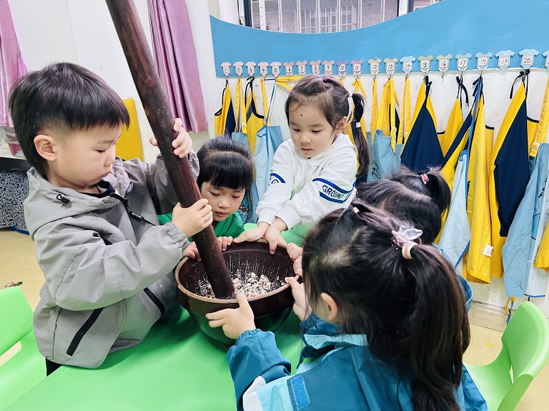 本网讯 4月20日,泥埠桥幼儿园开展了“谷雨擂擂茶”主题实践活动。 活动中,孩子们在老师引导下认识谷雨节气,了解擂茶习俗。小班幼儿闻茶香、认食材;大班幼儿动手研磨,体验擂茶乐趣;中班幼儿则通过拨玉米粒,为制作擂茶准备食材,在劳动中锻炼手部精细动作。 大家分工协作,一起研磨茶叶、花生、芝麻与玉米粒,现场茶香四溢。孩子们品尝着亲手制作的擂茶,感受传统美食的香甜,在实践中体验劳动快乐,感受传统文化魅力。该园相关负责人表示,本次谷雨擂茶主题活动,通过“分龄设计、分层体验”的方式,让不同年龄段的幼儿都能深度参与,既锻炼了动手、合作能力,又让本土非遗民俗文化在童趣中鲜活传承。 初审初校:谌瑶 复审复校:吉龙慧 终审终校:王满君