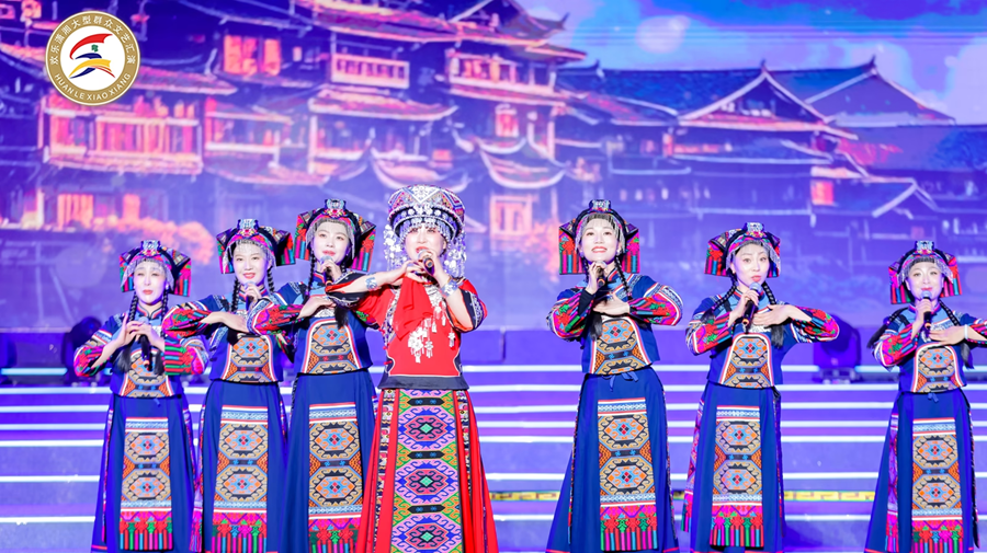 12月9日晚,优秀群众文艺作品展演在长沙滨江文化园上演。演出以“潮起潇湘·奇遇画卷”为主题,围绕湖南文化旅游“五张名片”和“村晚”“村歌”“湘超”等当下热点,展示湖南各地的地域特色、民俗文化和旅游资源。今年11月获评第二十届中国群星奖的戏剧小品《新定军山》、常德丝弦《走马楼的小秘密》,以及入围本届中国群星奖终评的舞蹈《永远的嗅枪队》、情景表演唱《撮珠朵·嫁》等湖南群众文艺精品都在本次展演中亮相。