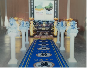 在礼厅布置绢花棺围388元、绢花背景墙200元、灯饰800元(含龙型灯柱1对200元、净瓶莲花灯柱1对200元、莲花灯3对200元、思念灯1对200元)