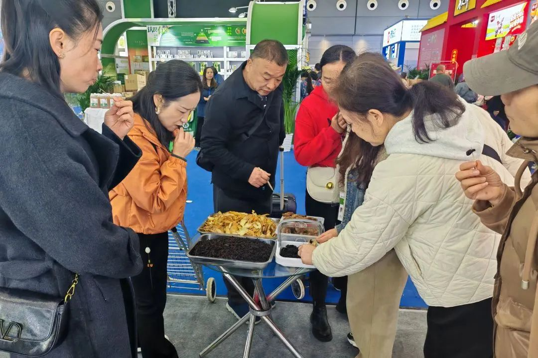 在湘蛮生态农业的黄精特色产品展销区,人头攒动,参展群众络绎不绝。