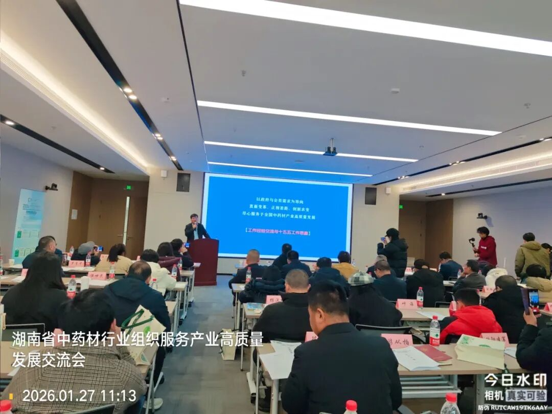 为进一步提升我省中药材产业相关组织“服务国家、服务社会、服务群众、服务行业”的综合能力,解读产业政策,凝聚发展共识,共同推动我省中药材产业高质量协同发展,1月27日,湖南省中药材产业协会(以下简称“省中药材协会”)、湖南会展集团有限责任公司组织的湖南省中药材行业组织服务产业高质量发展交流会在长沙顺利举行。湖南省农业农村厅、工业和信息化厅、中医药管理局等省直部门和地方中药材主管部门领导,中国中药协会、湖南省社会组织促进会、湖南省医药行业协会中药饮片产业分会和地方协会代表,湖南省中药材产业技术体系试验站站长等专家,共80余人参加会议。