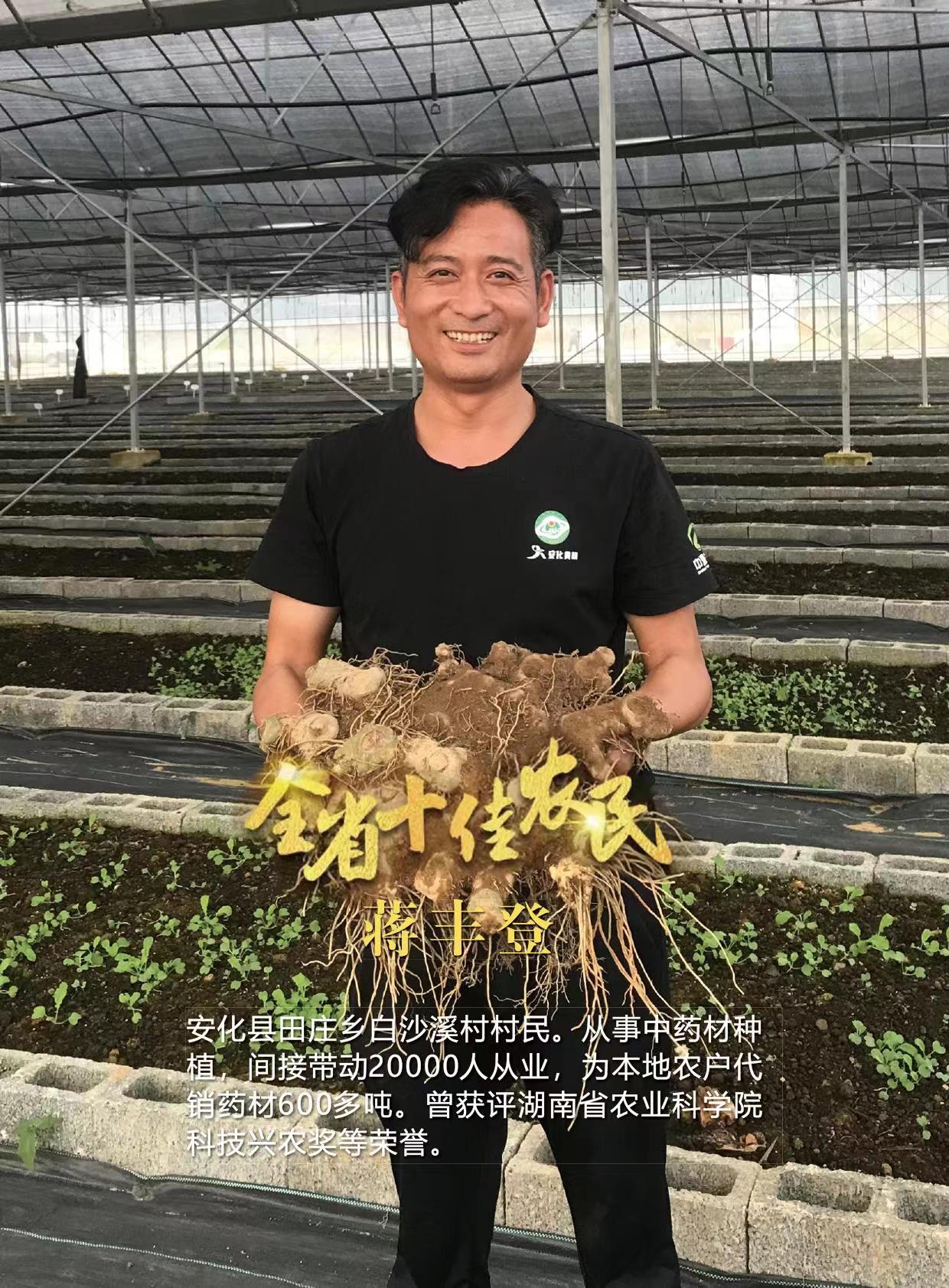 从安化田庄乡的贫困农家子弟,到扎根乡土的中药材“土专家”,蒋丰登怀揣着以中药材兴业、带乡邻致富的心愿,积极投身技术推广与帮扶工作。自2018年起,年均开展技术培训授课1200余人次,直接帮扶400名贫困户依靠中药材种植实现脱贫,更辐射带动600余户农户投身种植产业,用实干与担当带领乡邻共赴致富之路,以匠心践行着服务乡土、助力乡村发展的初心使命。