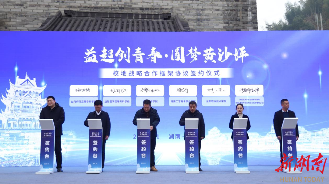 益阳市五所高校代表分别与黄沙坪老街青创街区签订校地战略合作框架协议