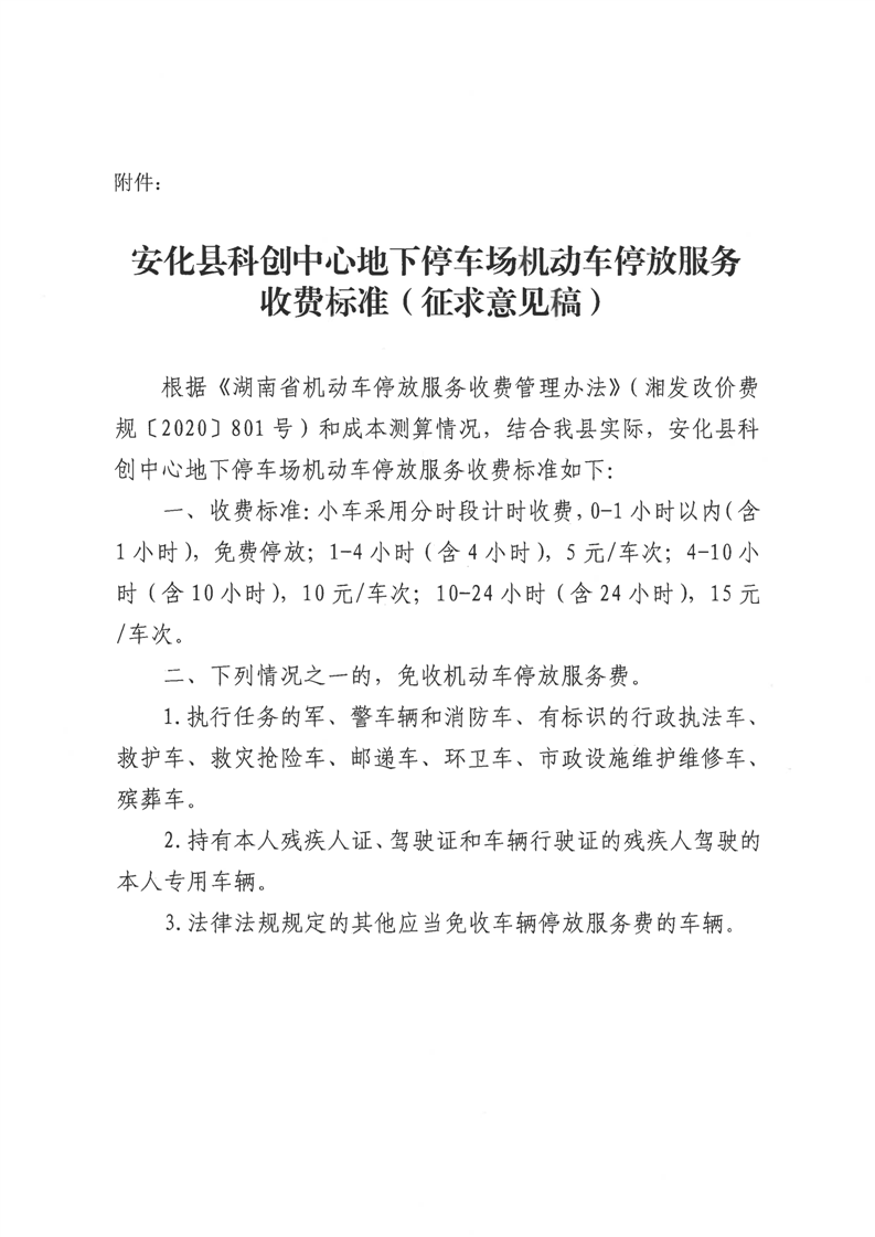 关于《安化县科创中心地下停车场机动车停放服务收费标准(征求意见稿)》向社会公开征求意见的公告
