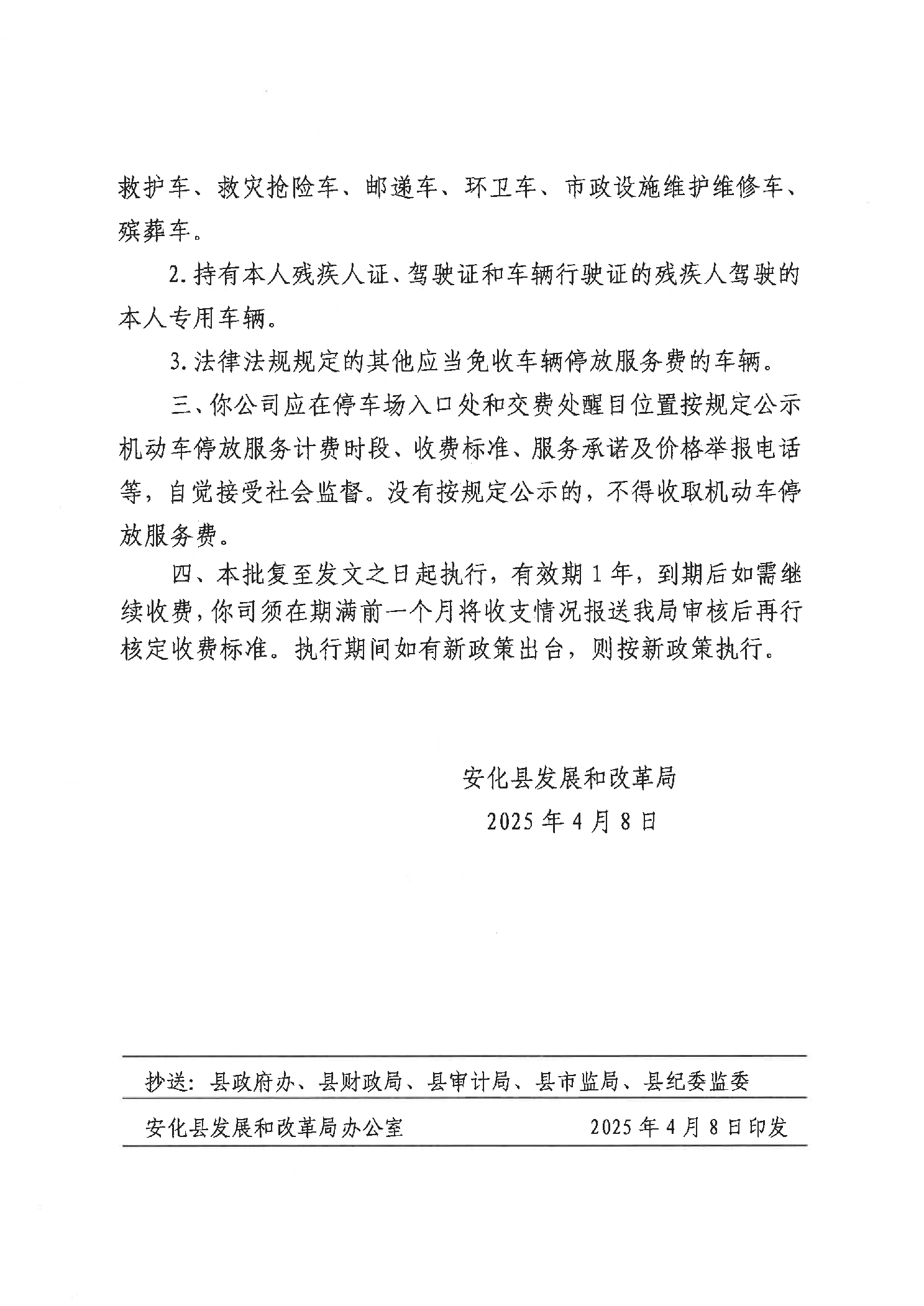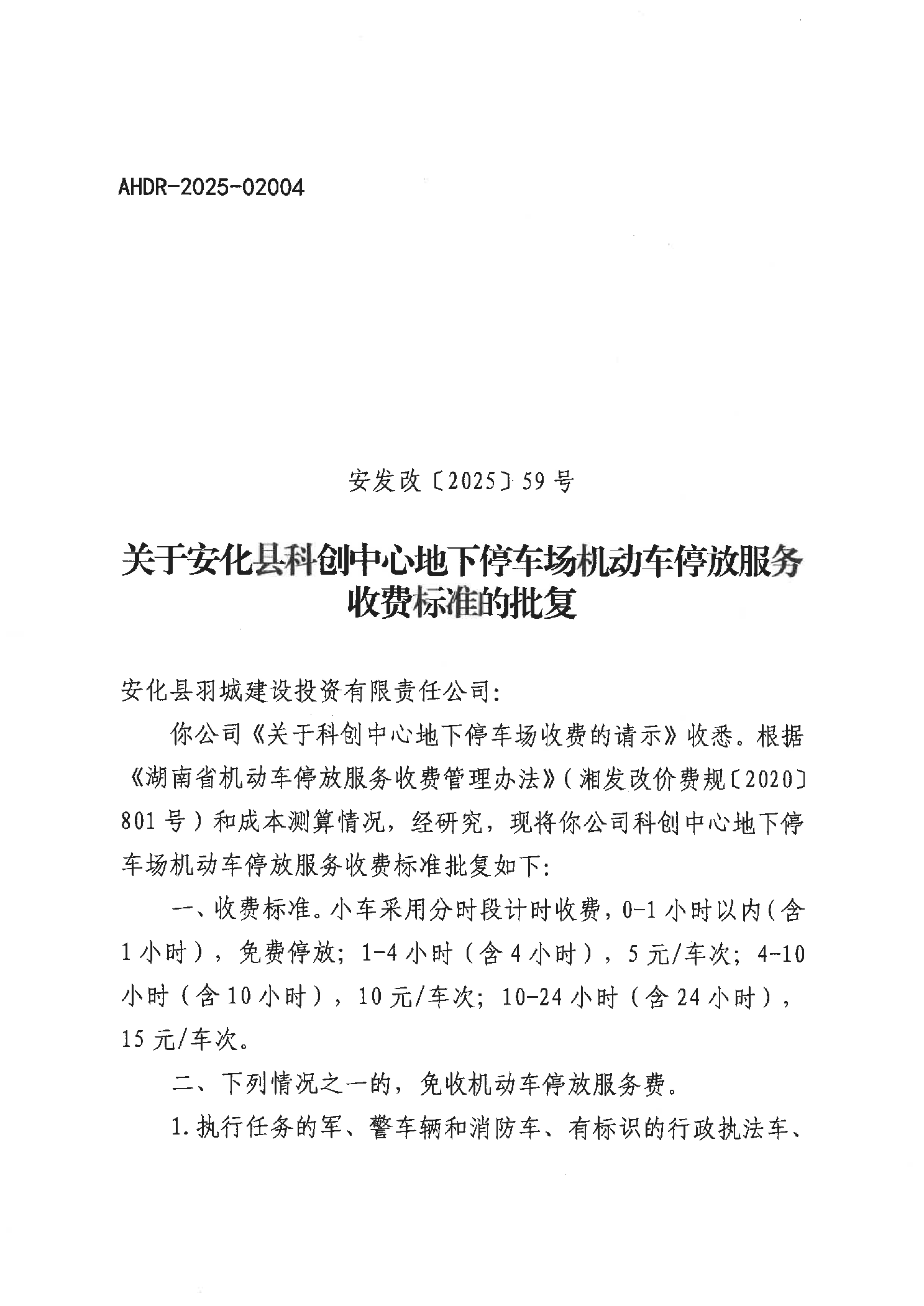 关于安化科创中心地下停车场机动车停放服务收费标准的批复-公示
