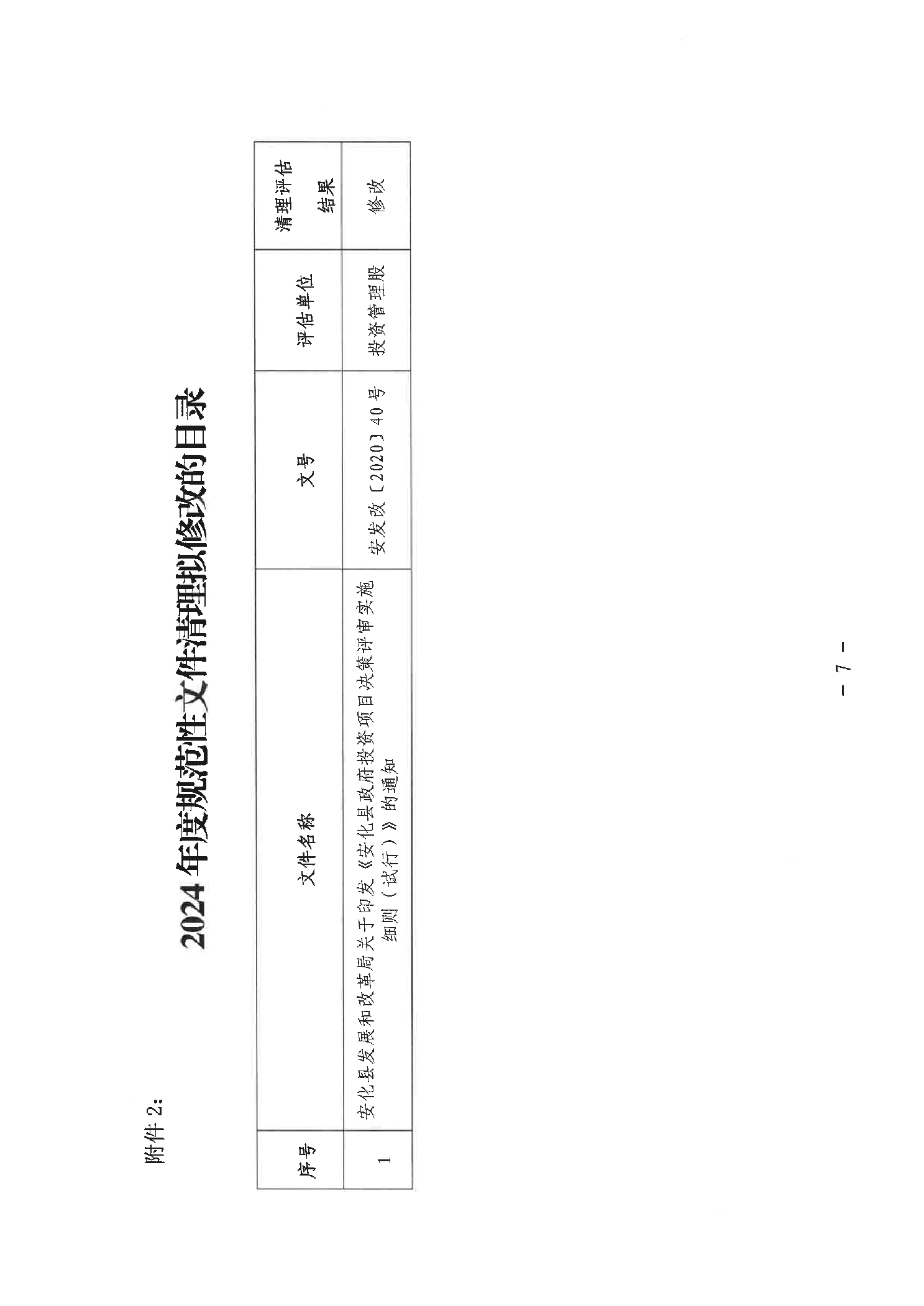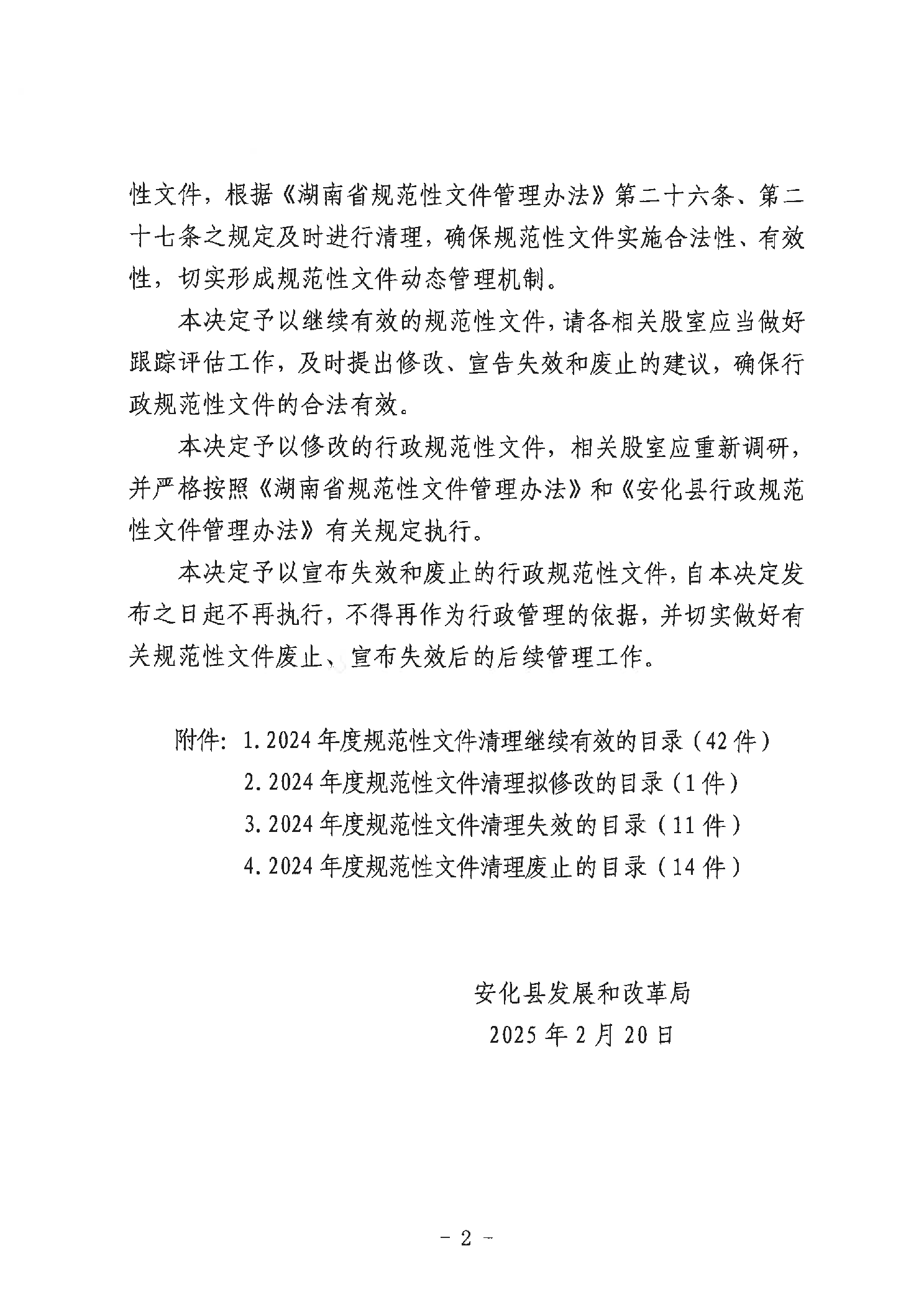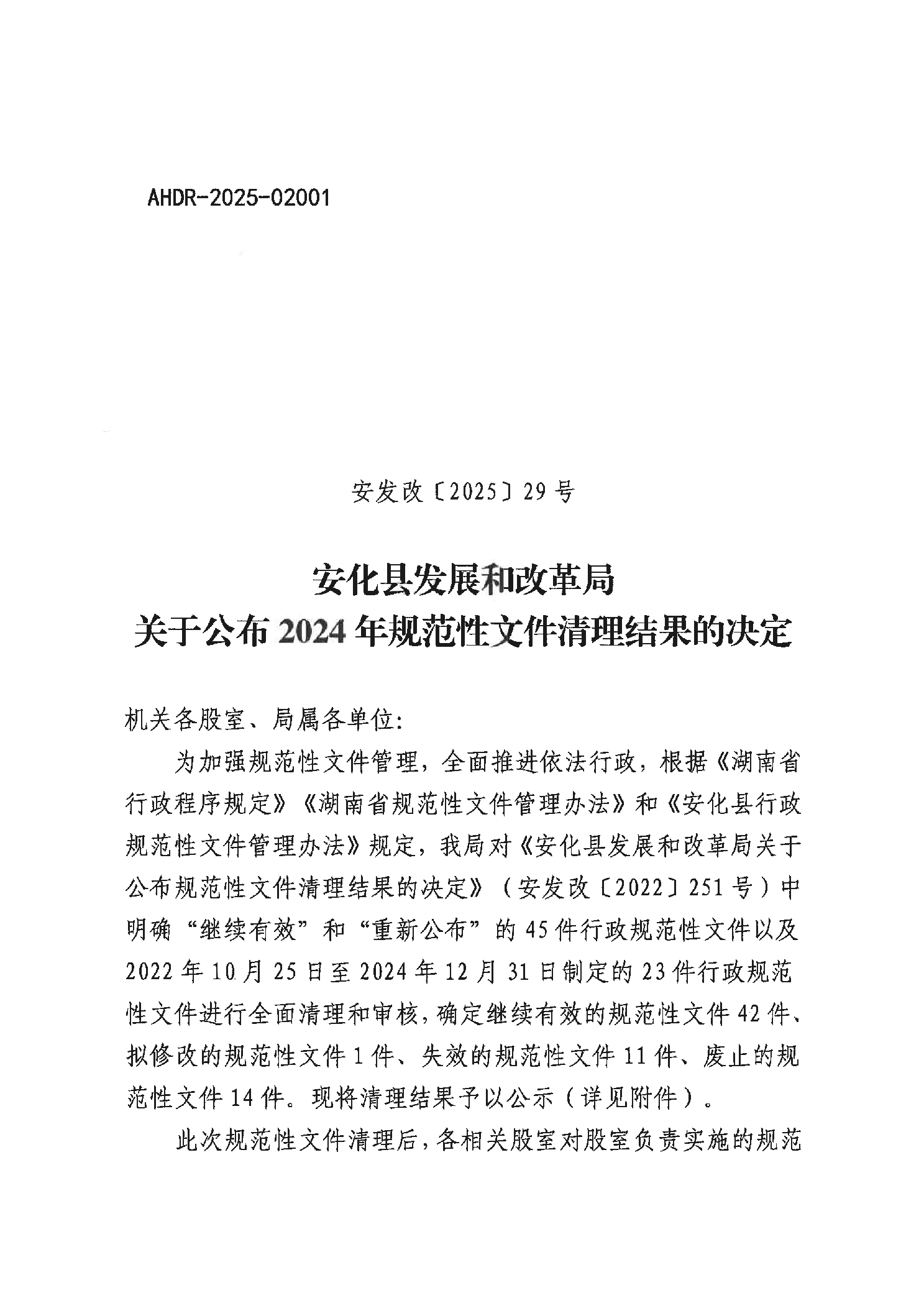 安化县发展和改革局关于公布2024年规范性文件清理结果的决定