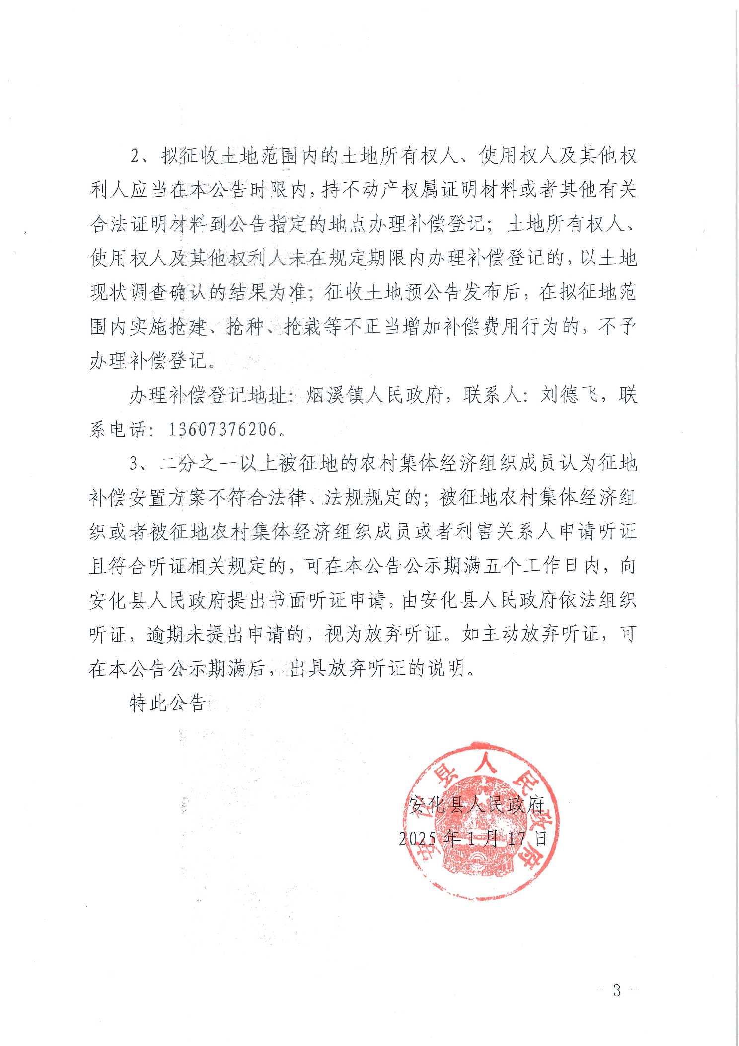 关于安化县2025年第七批次用地项目拟征收土地补偿安置方案公告
