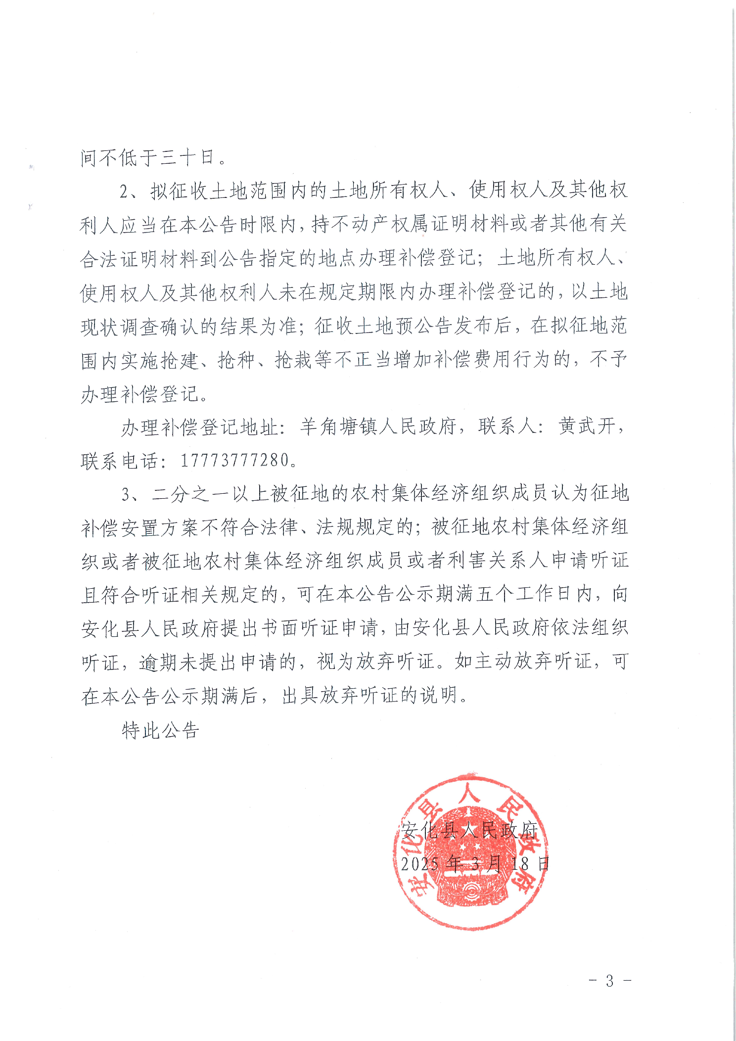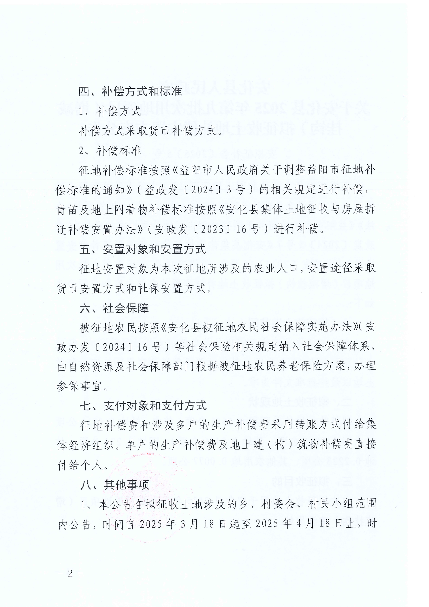 关于安化县2025年第九批次用地项目(增减挂钩)拟征收土地补偿安置方案公告