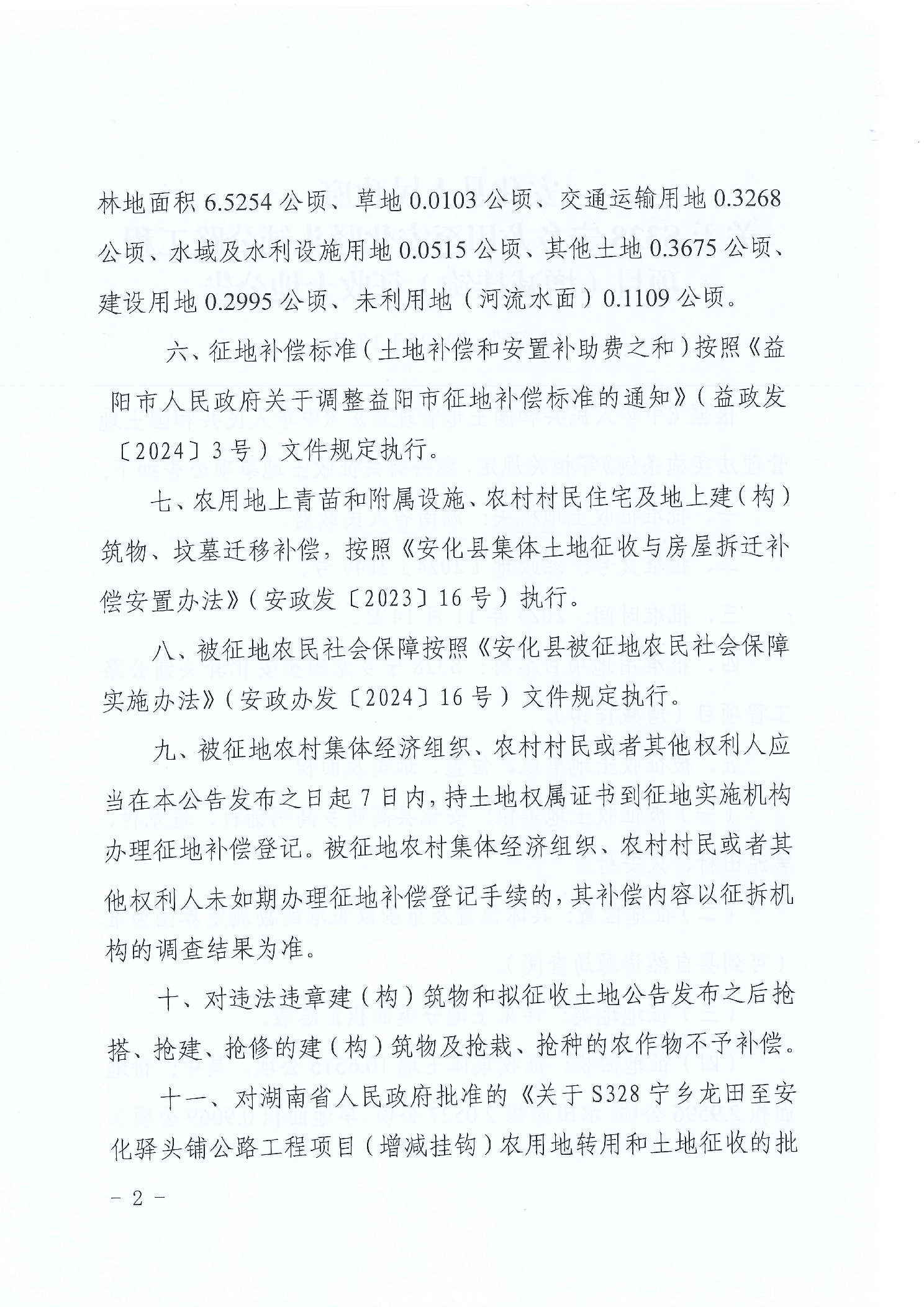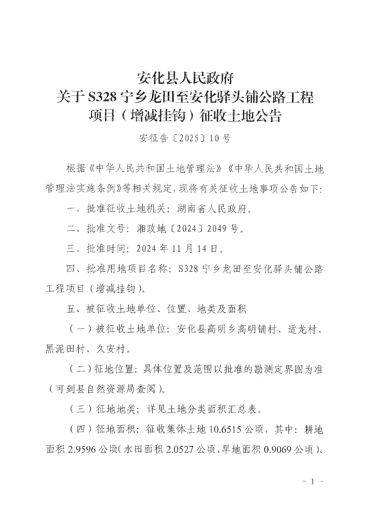 S328宁乡龙田至安化驿头铺公路工程项目(增减挂钩)征收土地公告
