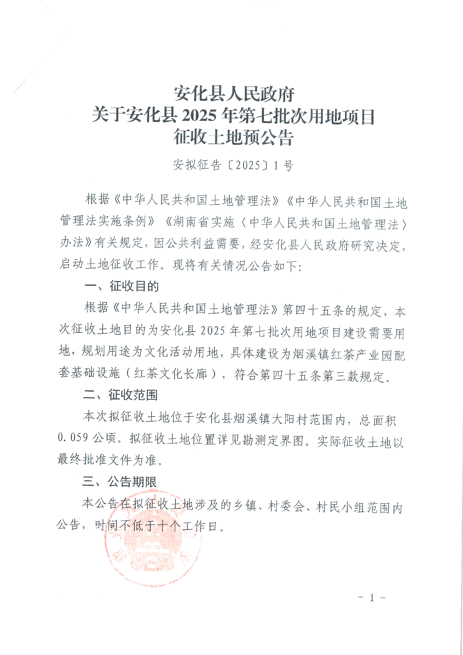 关于安化县2025年第七批次用地项目征收土地预公告 (2)