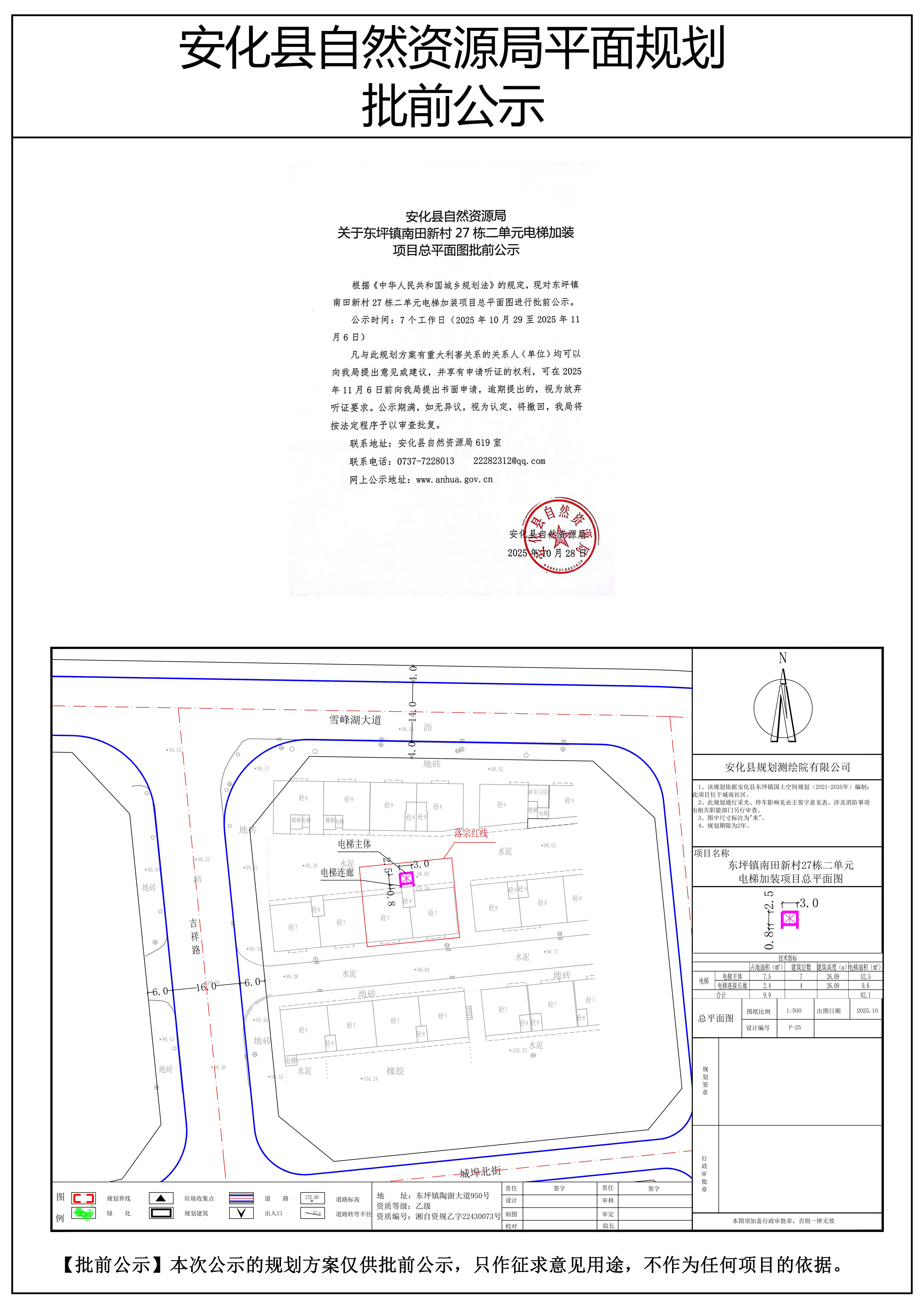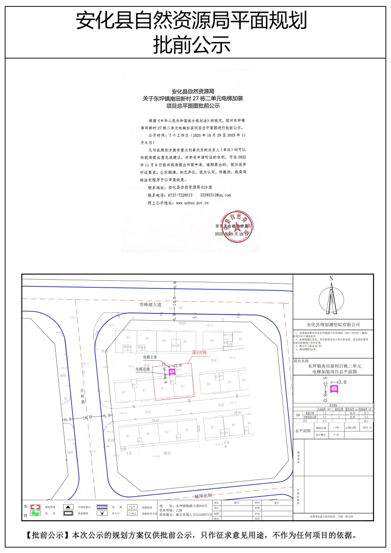 东坪镇南田新村27栋二单元电梯加装项目总平面图批前公示