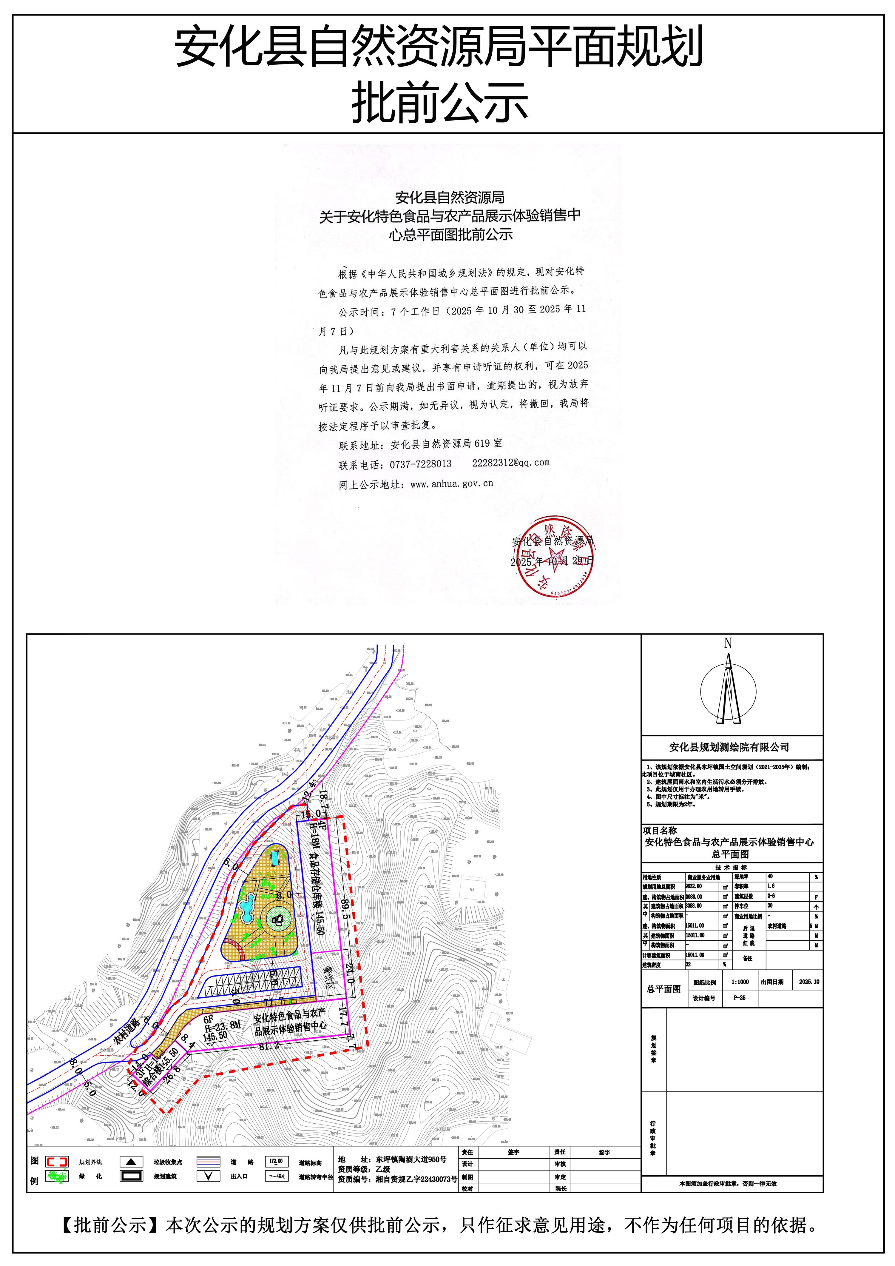 安化特色食品与农产品展示体验销售中心总平面图批前公示
