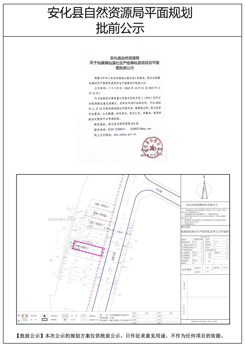 仙溪镇仙溪社区严彪等私房项目总平面图批前公示