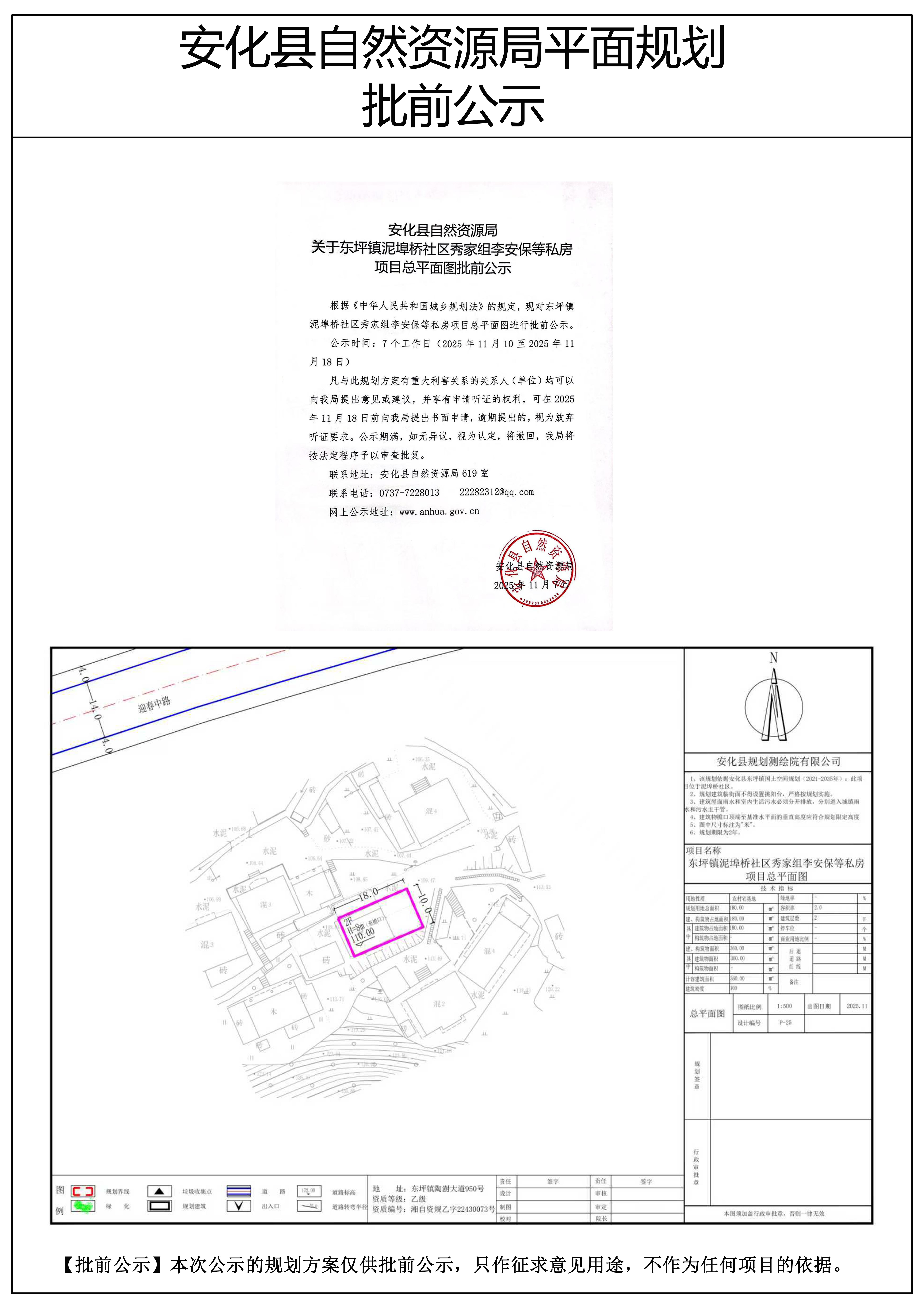 东坪镇泥埠桥社区秀家组李安保等私房项目总平面图批前公示