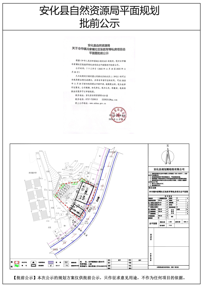 冷市镇冷家嘴社区张胜军等私房项目总平面图批前公示
