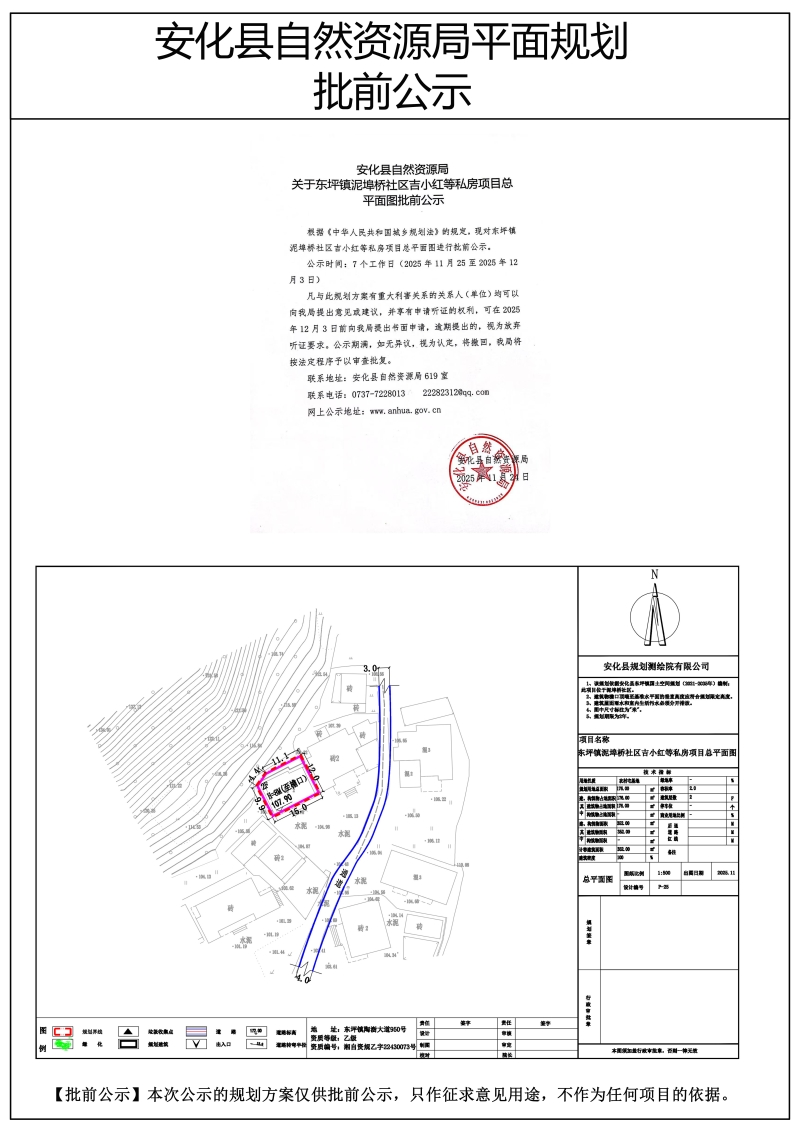 东坪镇泥埠桥社区吉小红等私房项目总平面图批前公示