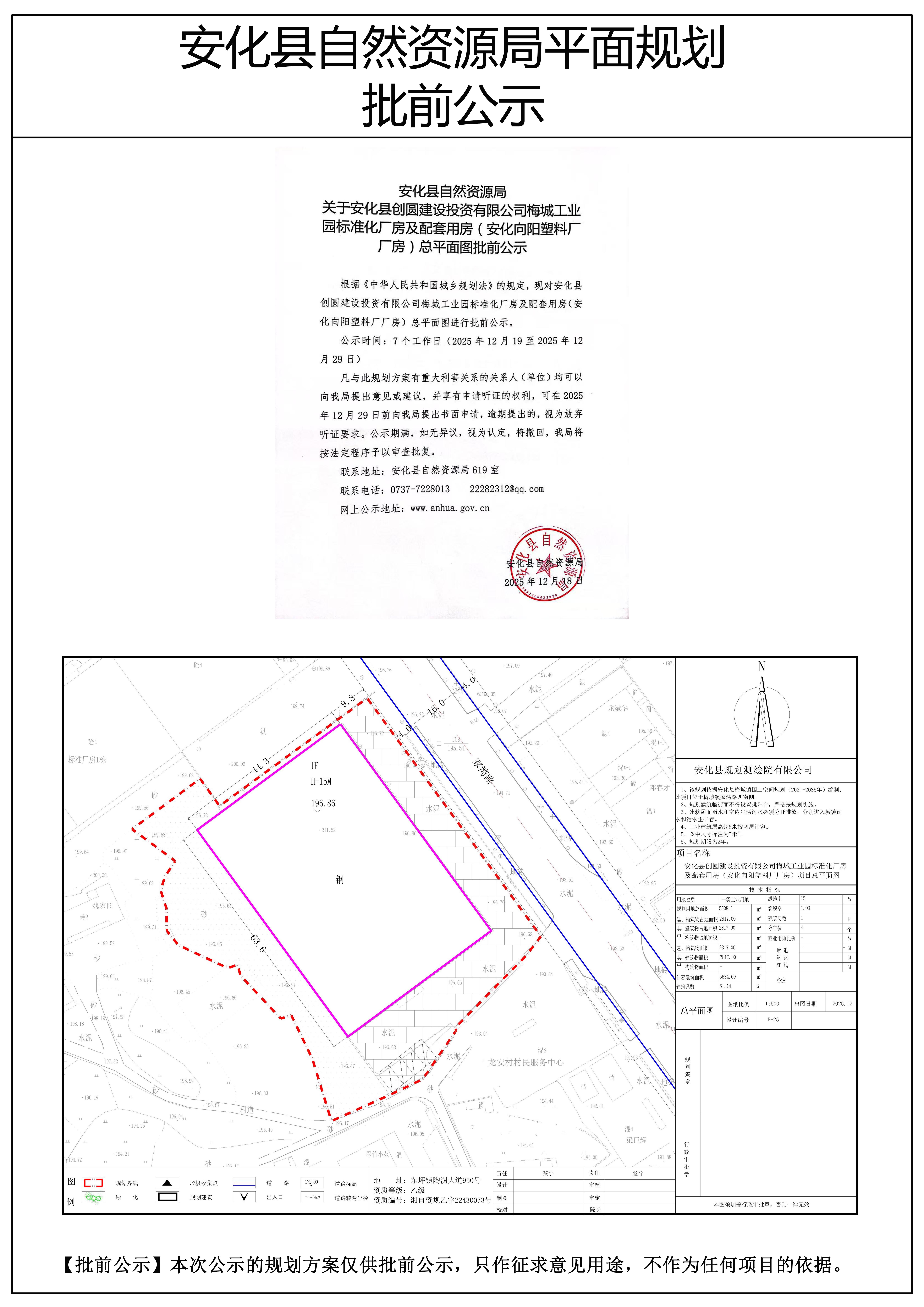 安化县创圆建设投资有限公司梅城工业园标准化厂房及配套用房(安化向阳塑料厂厂房)总平面图批前公示