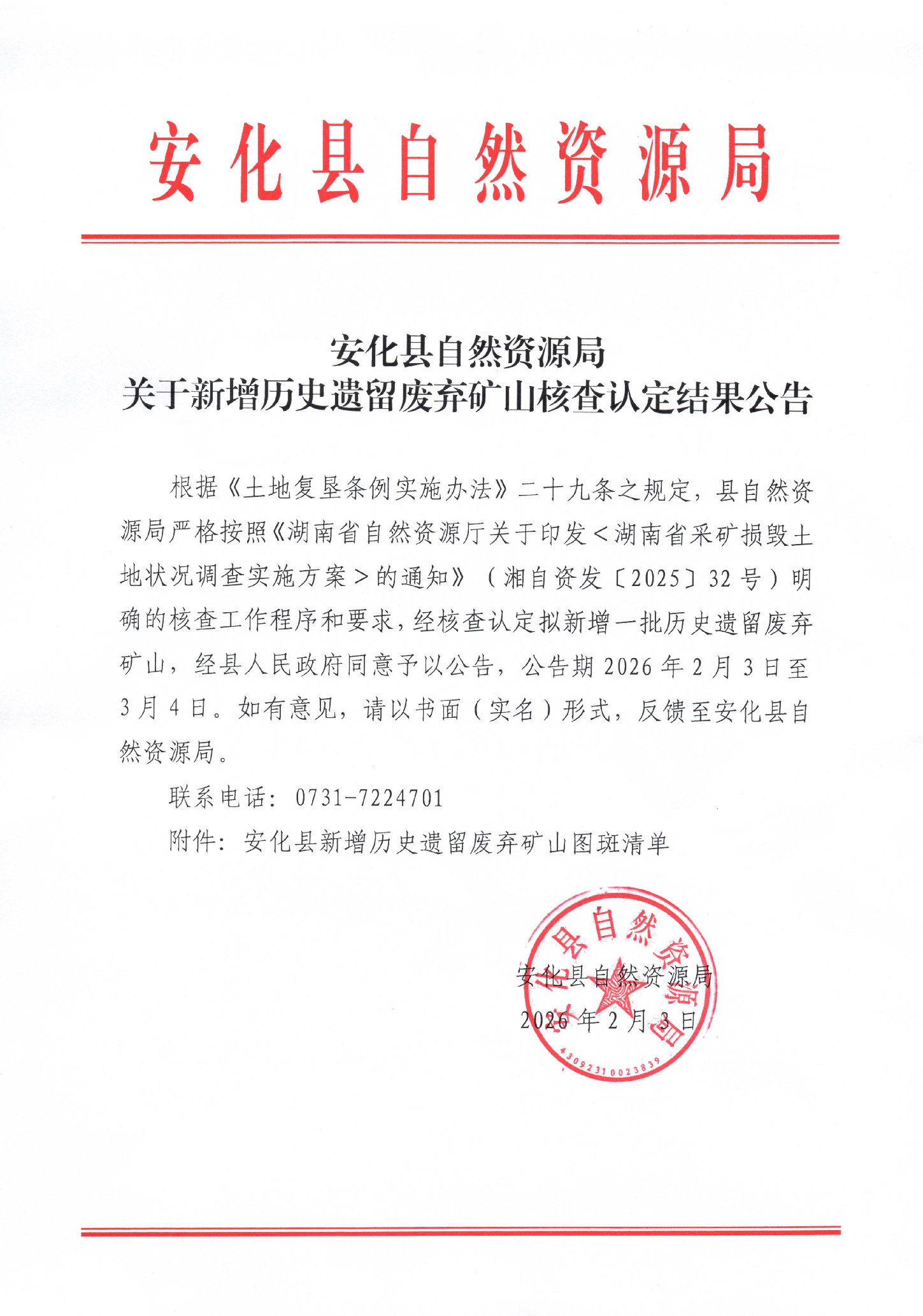 关于新增历史遗留废弃矿山核查认定结果公告