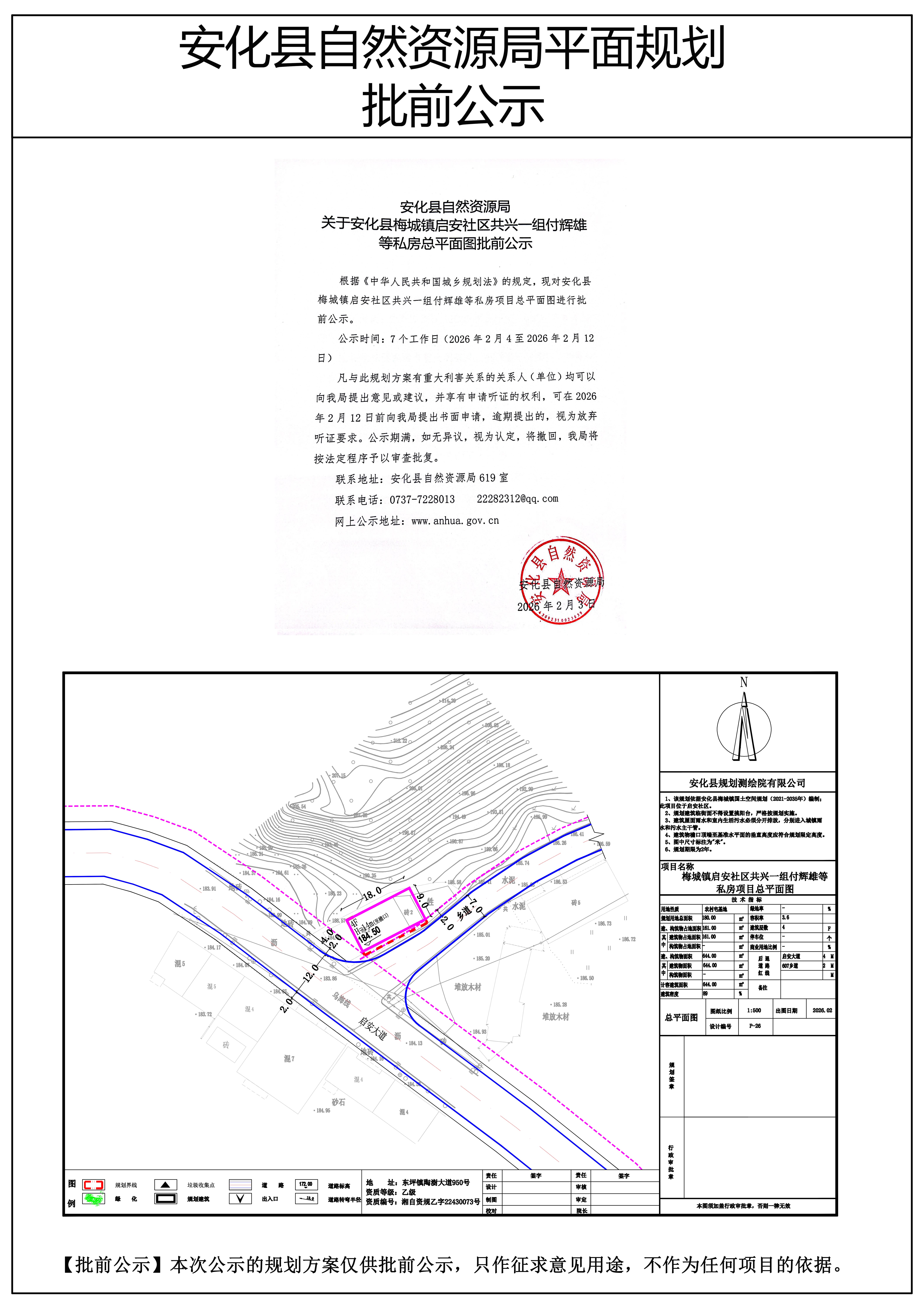 安化县梅城镇启安社区共兴一组付辉雄等私房总平面图批前公示