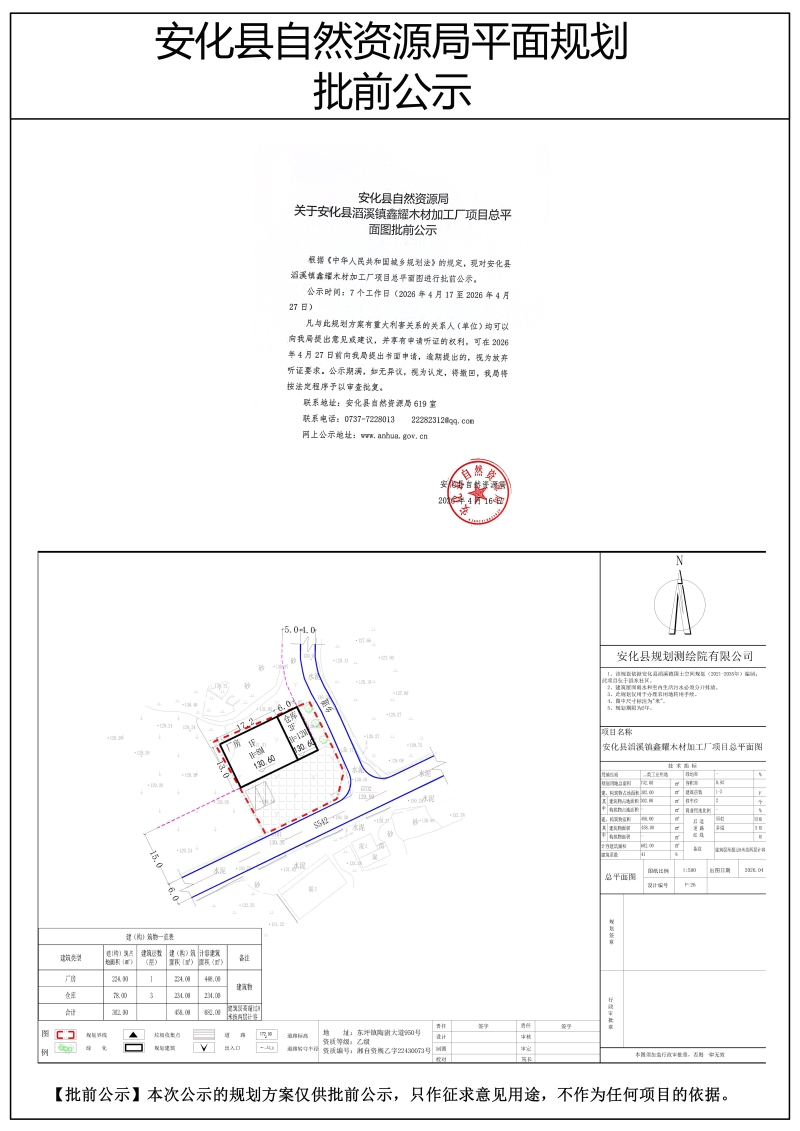 安化县滔溪镇鑫耀木材加工厂项目总平面图批前公示