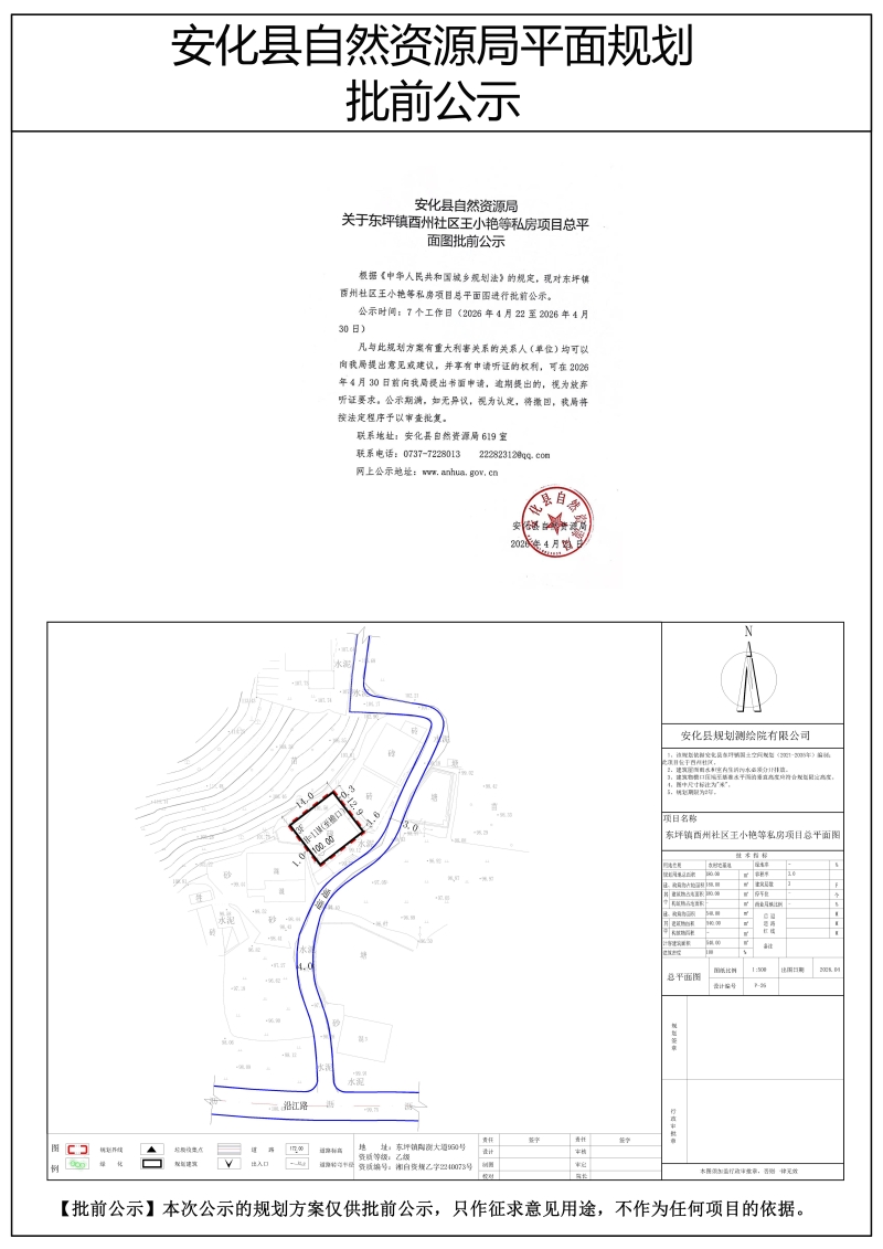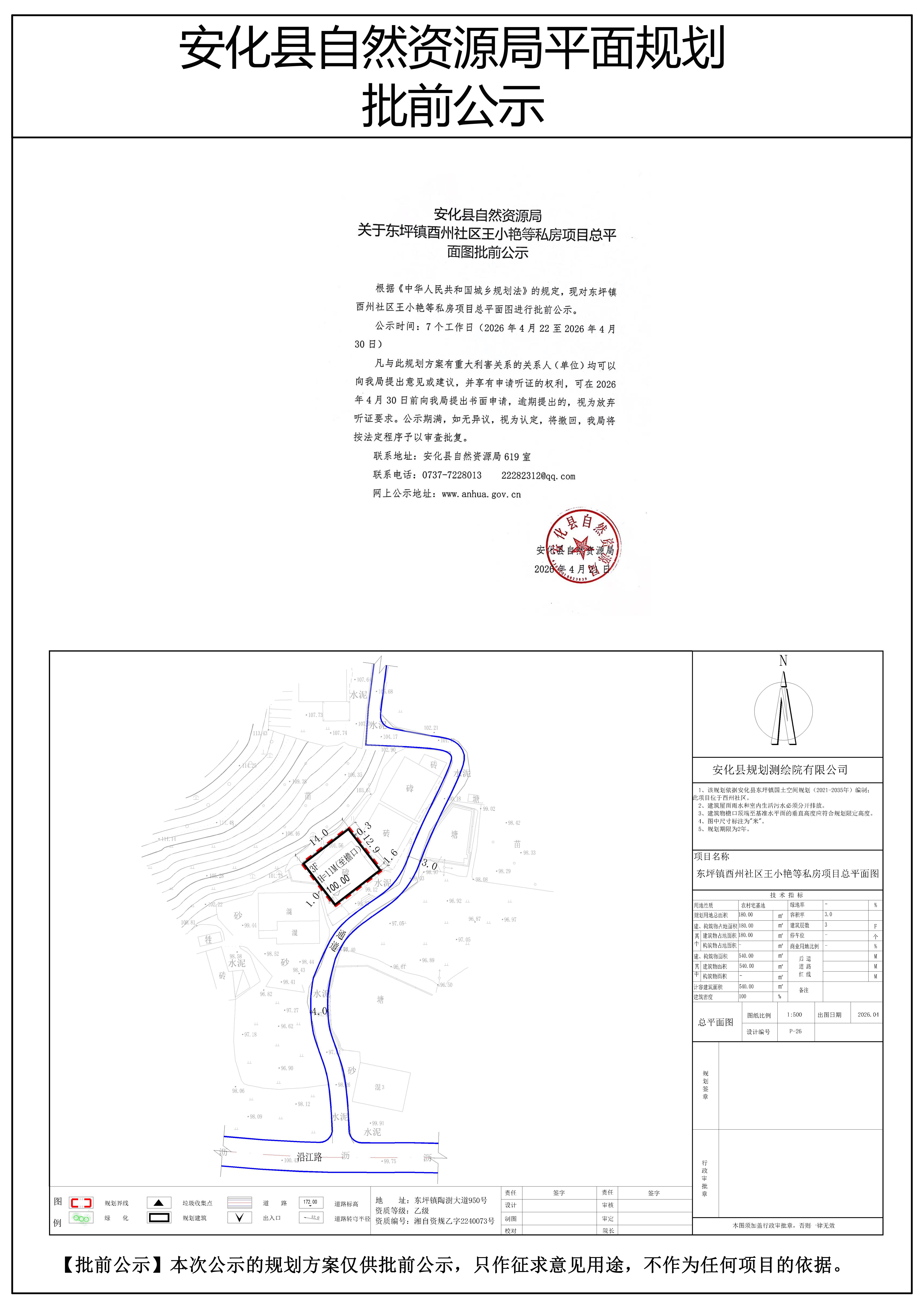 东坪镇酉州社区王小艳等私房项目总平面图批前公示