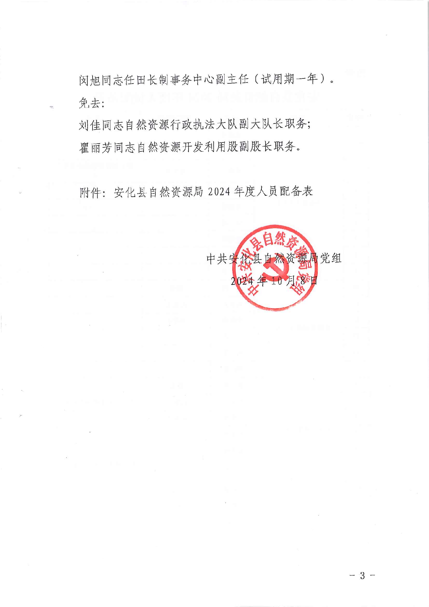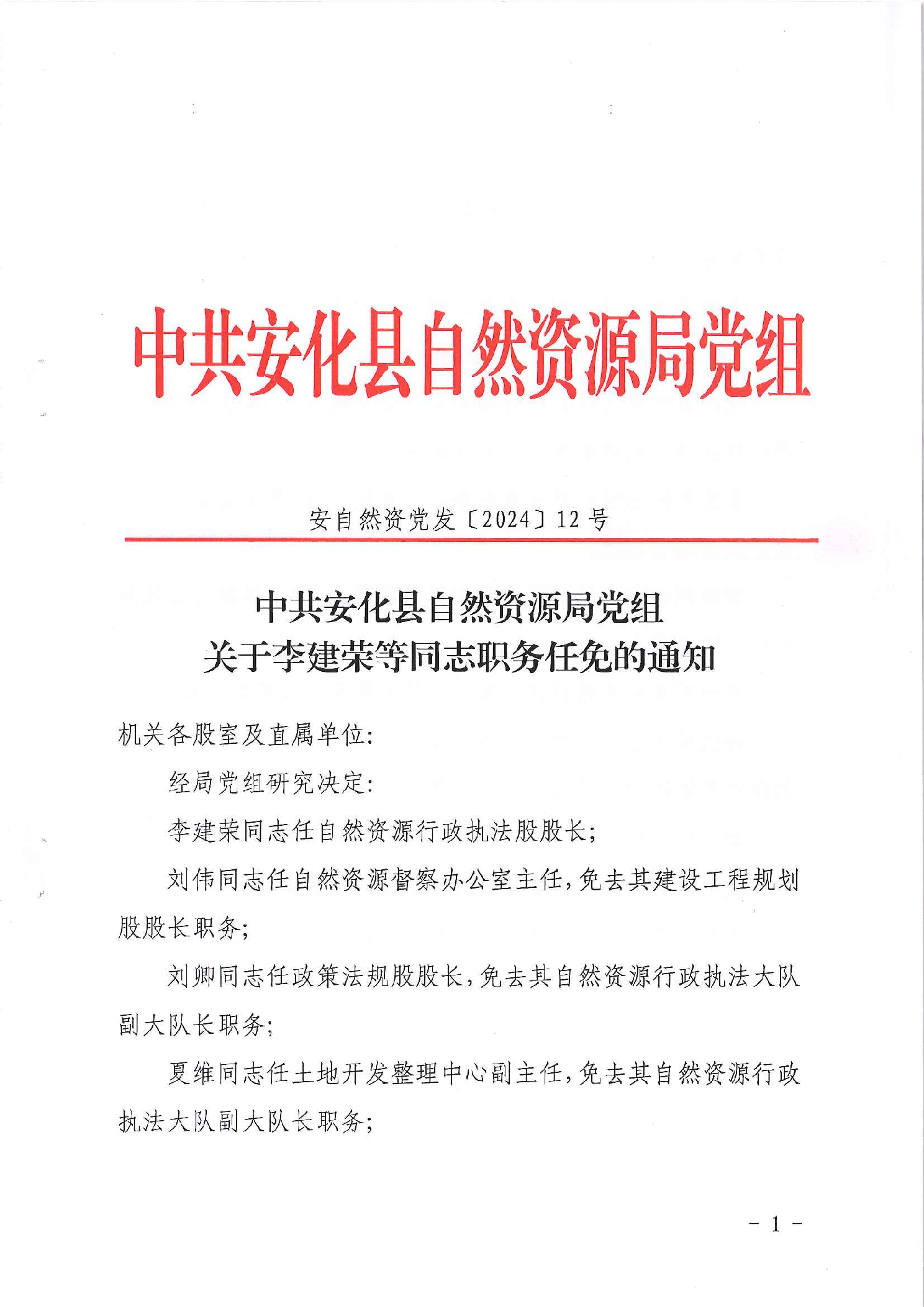 中共安化县自然资源局党组关于李建荣等同志职务任免的通知