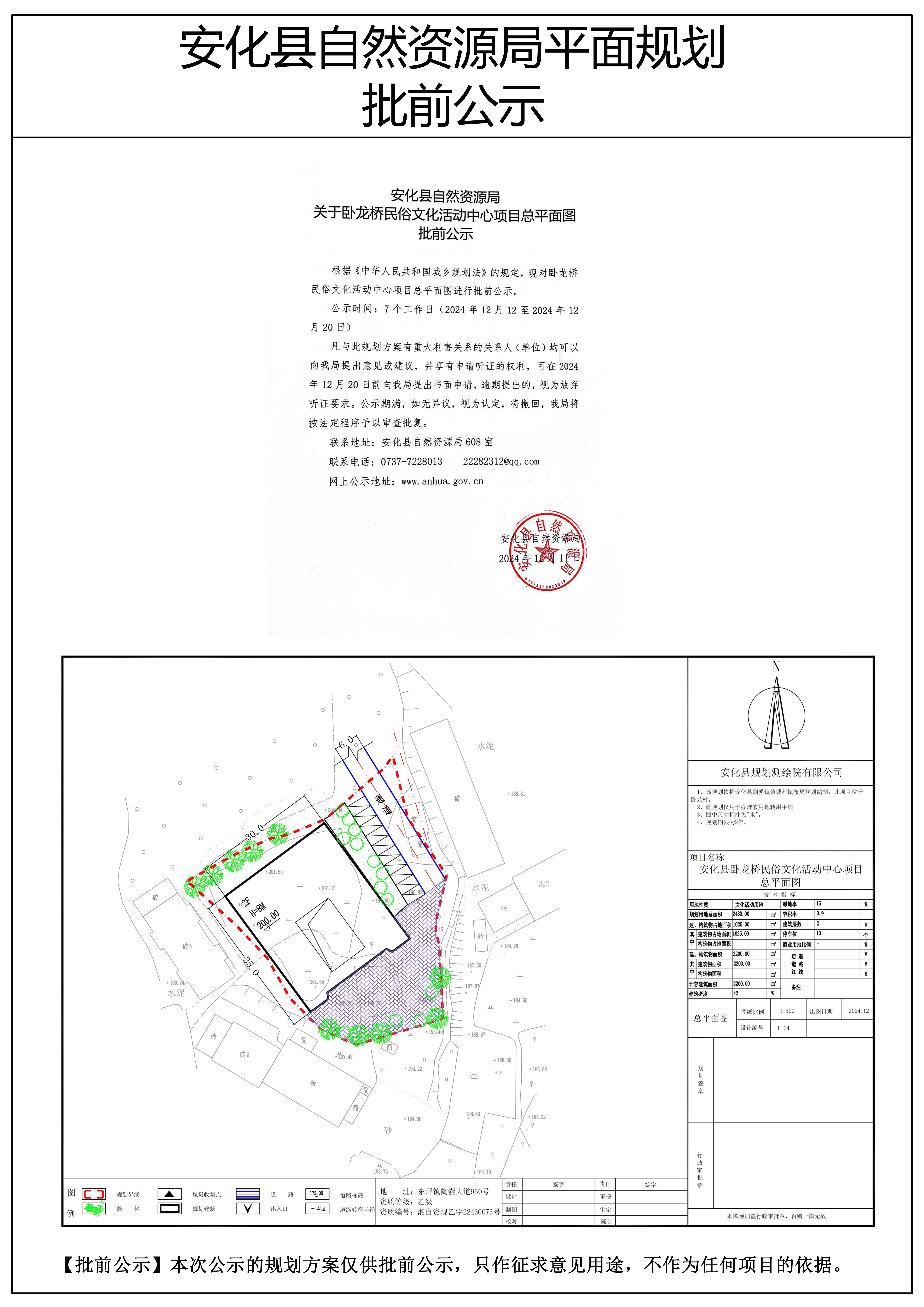 卧龙民俗文化活动中心项目总平面图批前公示