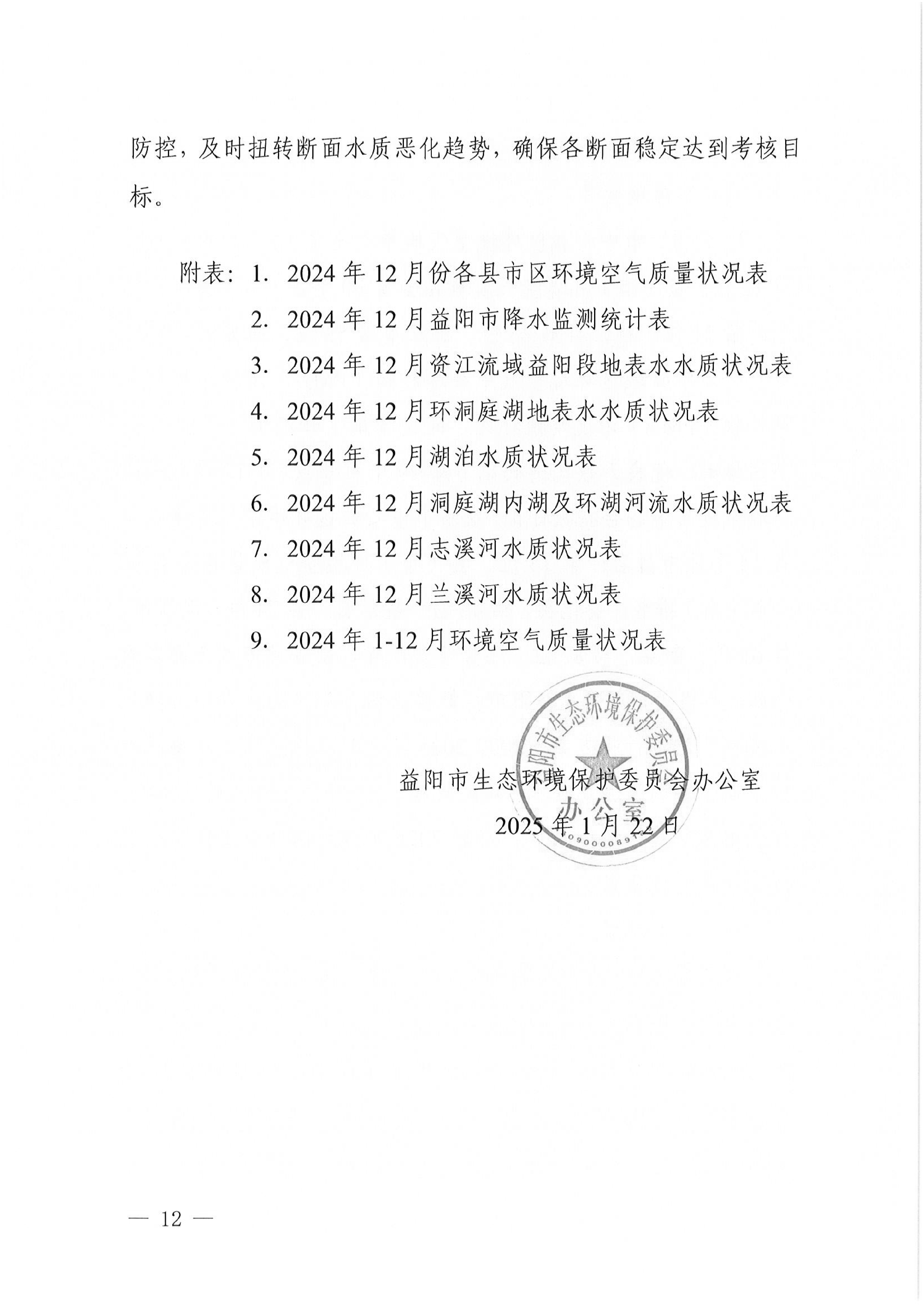 2024年12月全市环境质量状况的通报