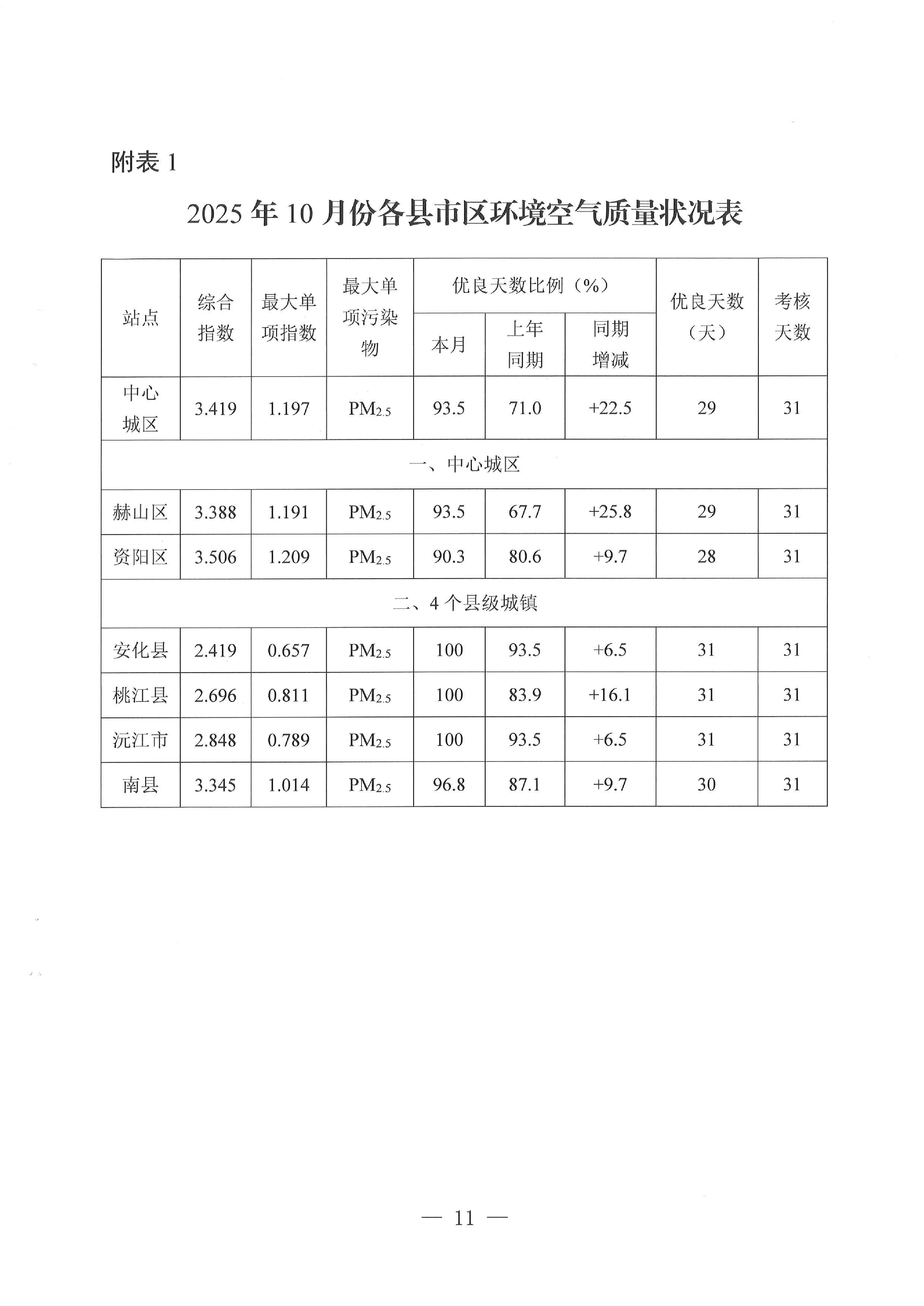 2025年10月全市环境质量状况的通报
