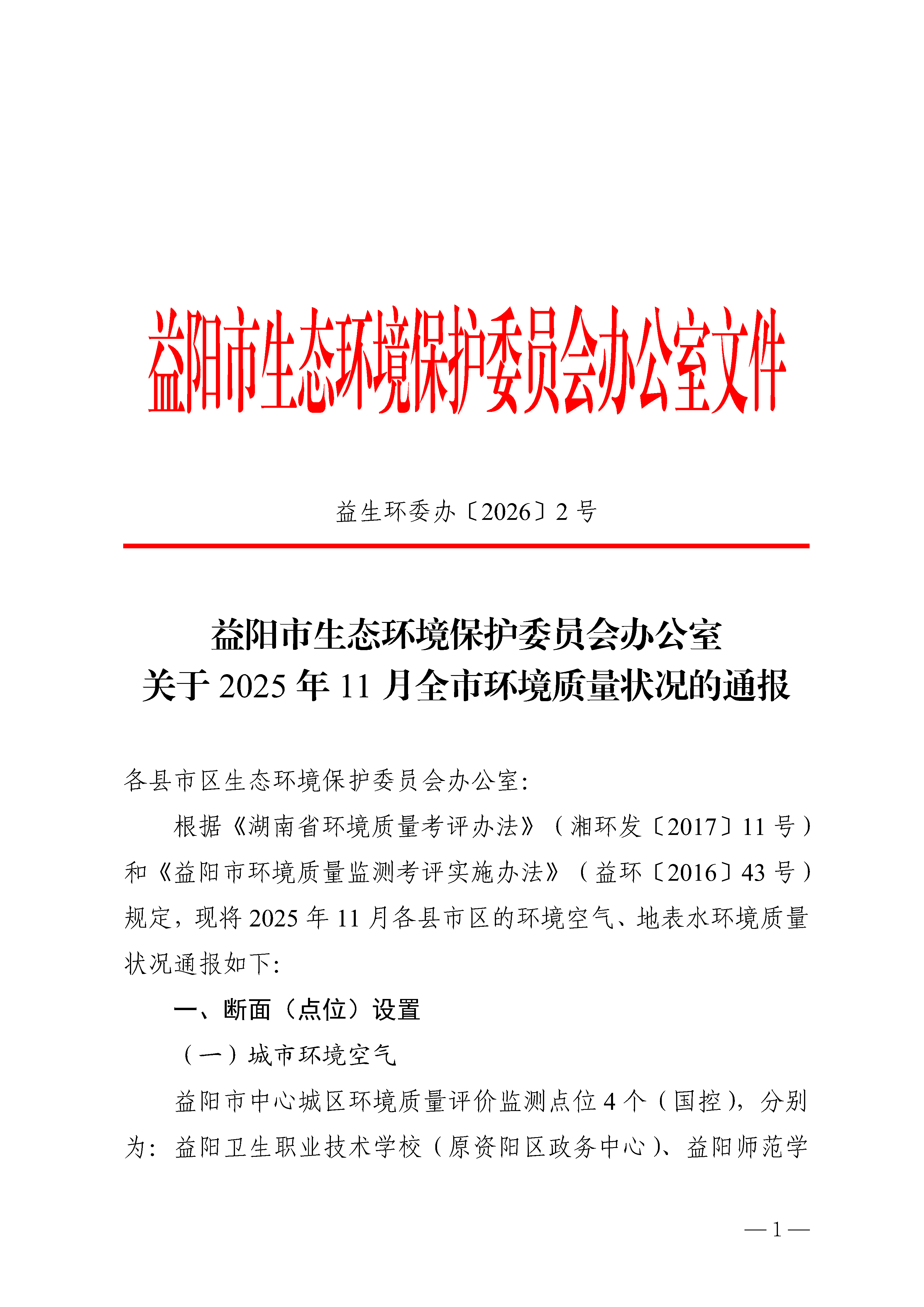 2025年11月全市环境质量状况的通报