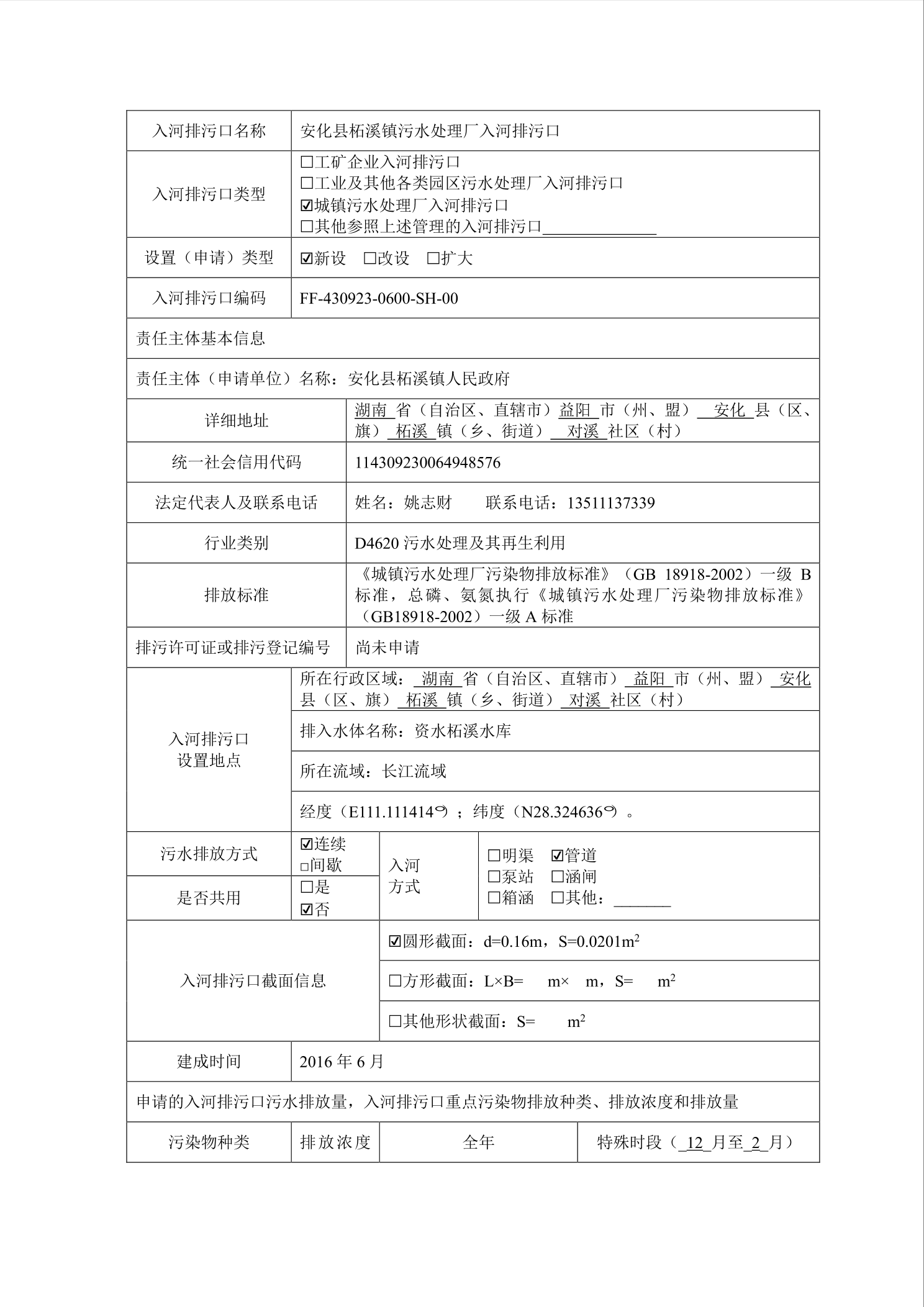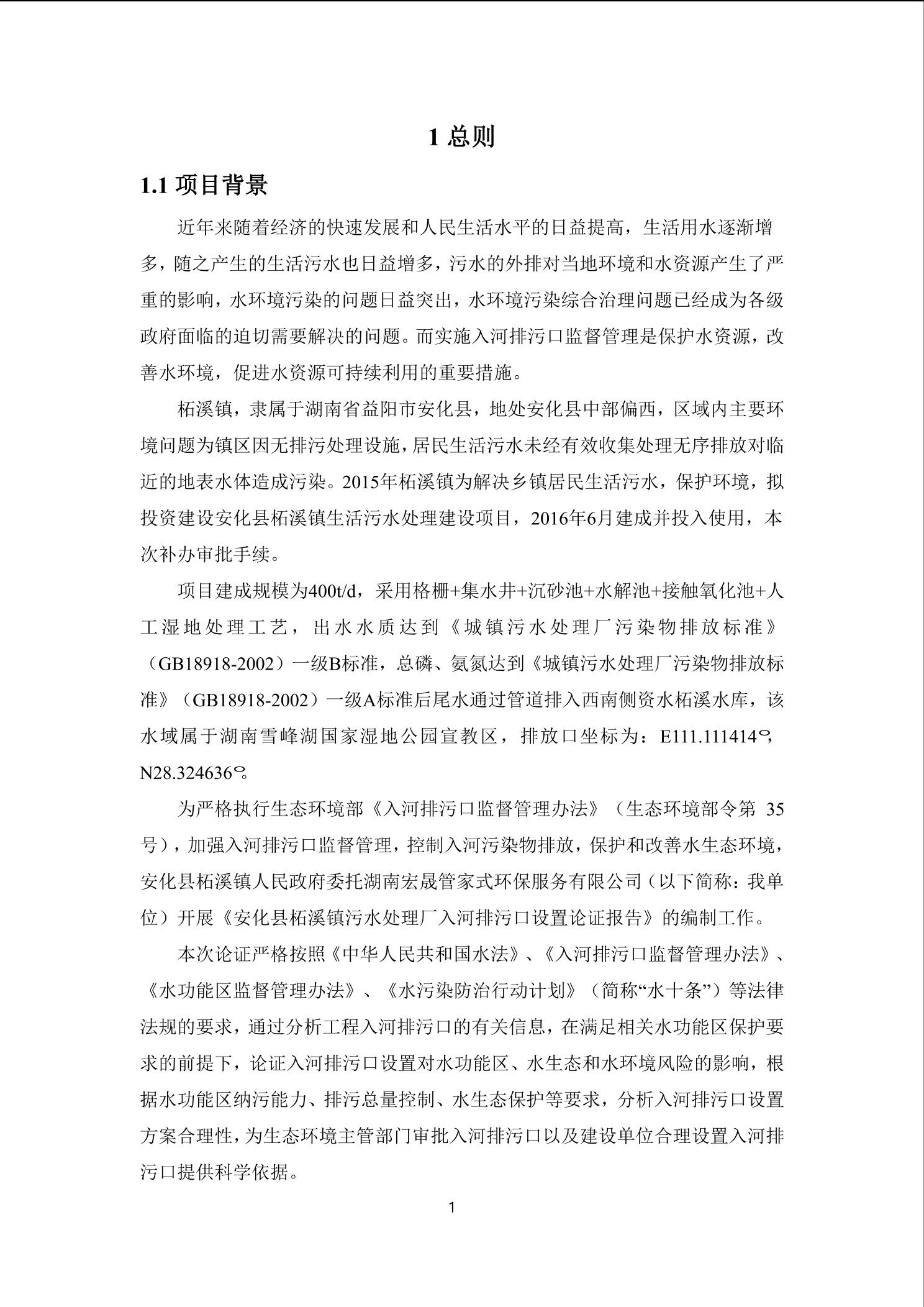 安化县柘溪镇污水处理厂入河排污口设置