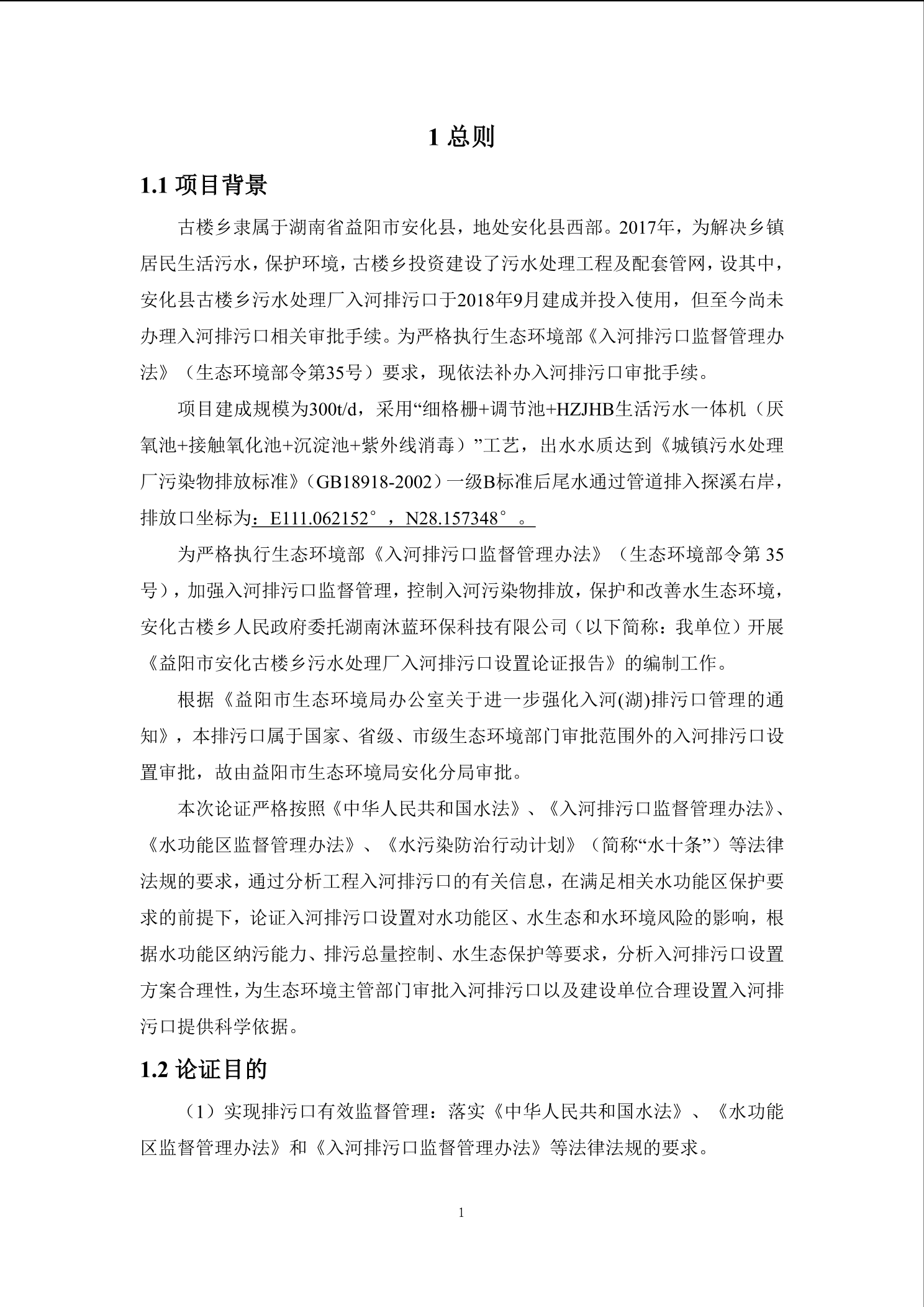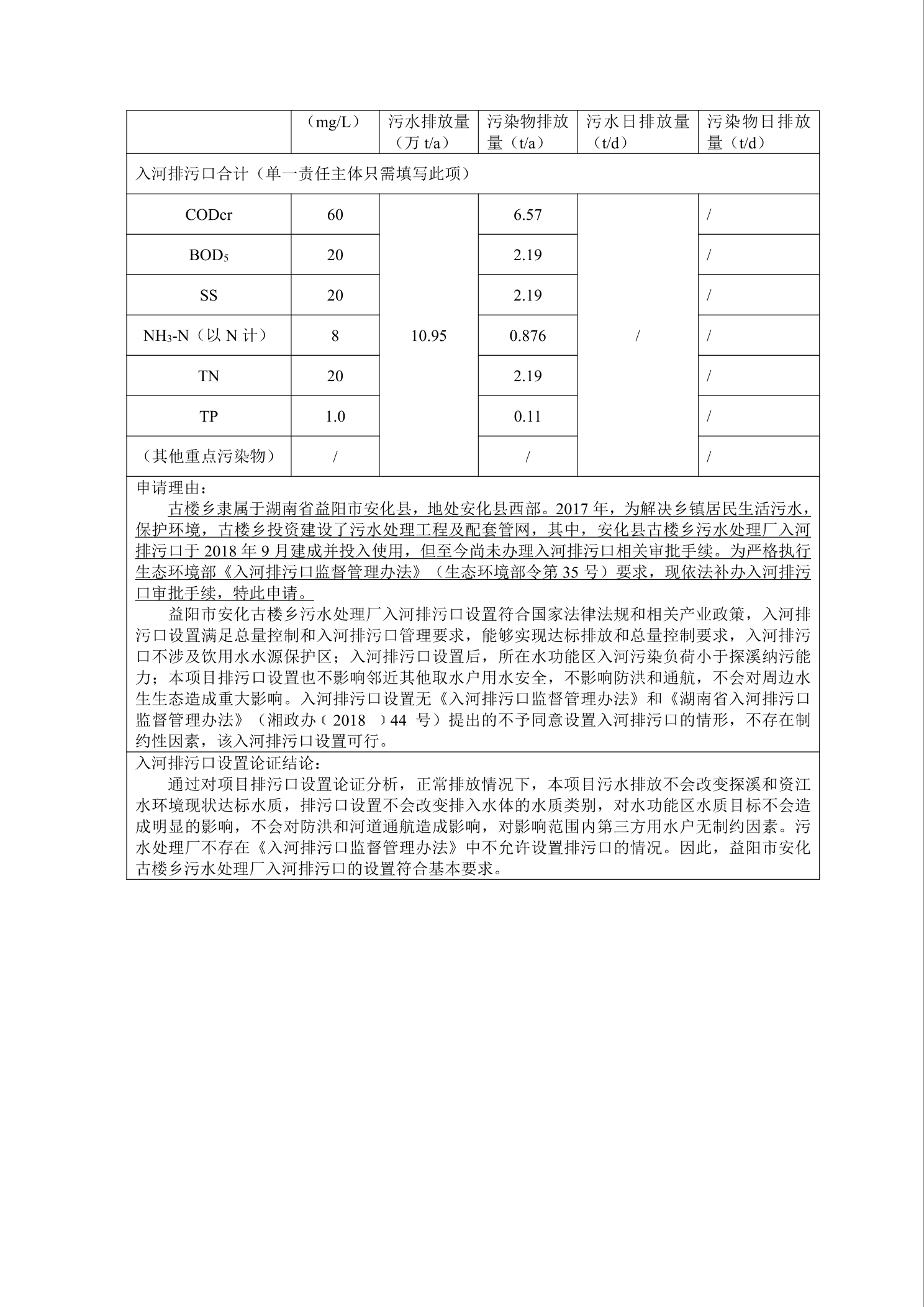 安化县古楼乡污水处理厂入河排污口设置
