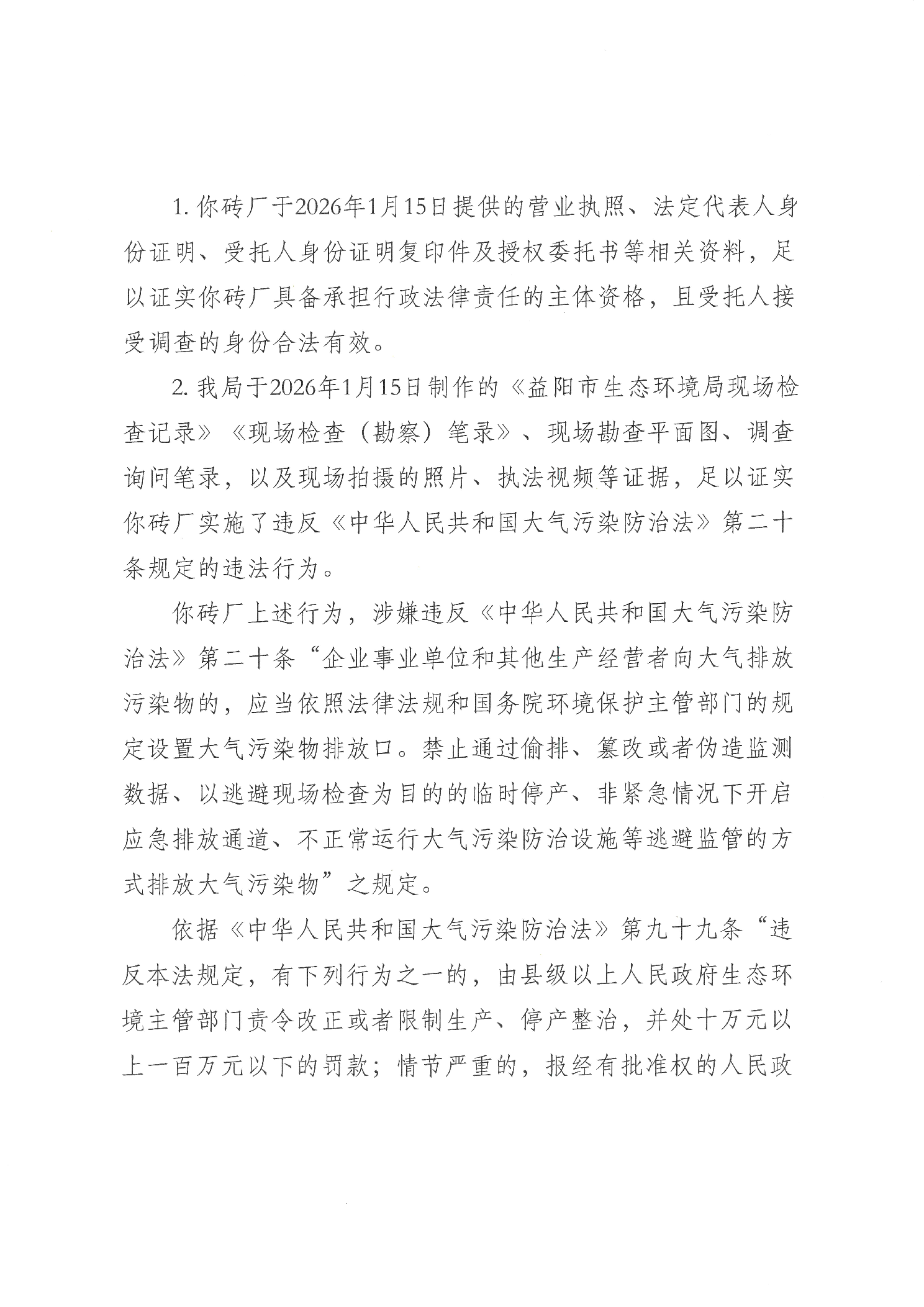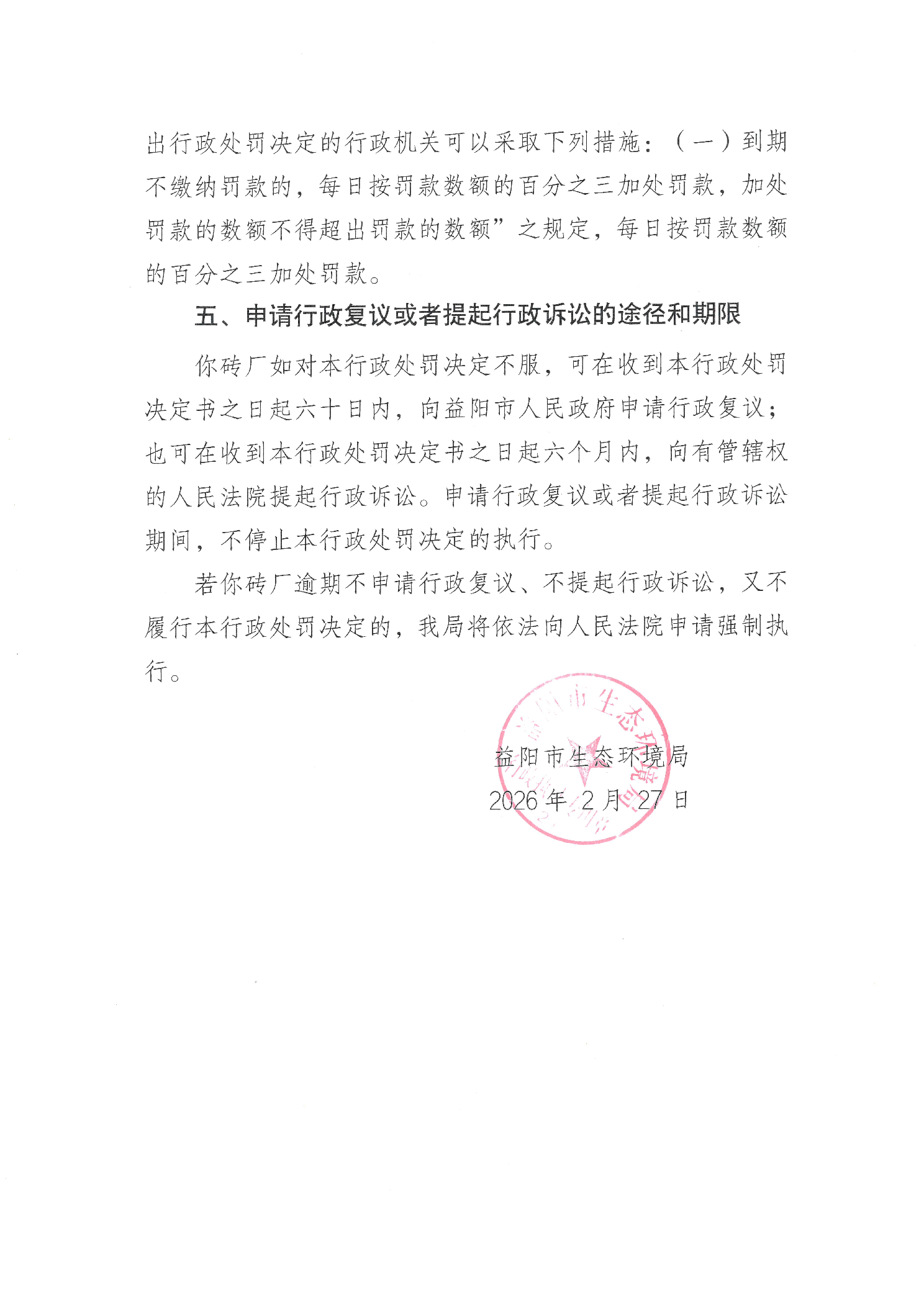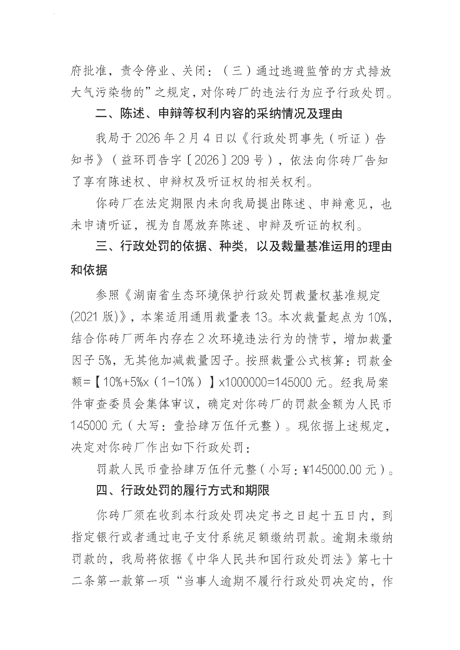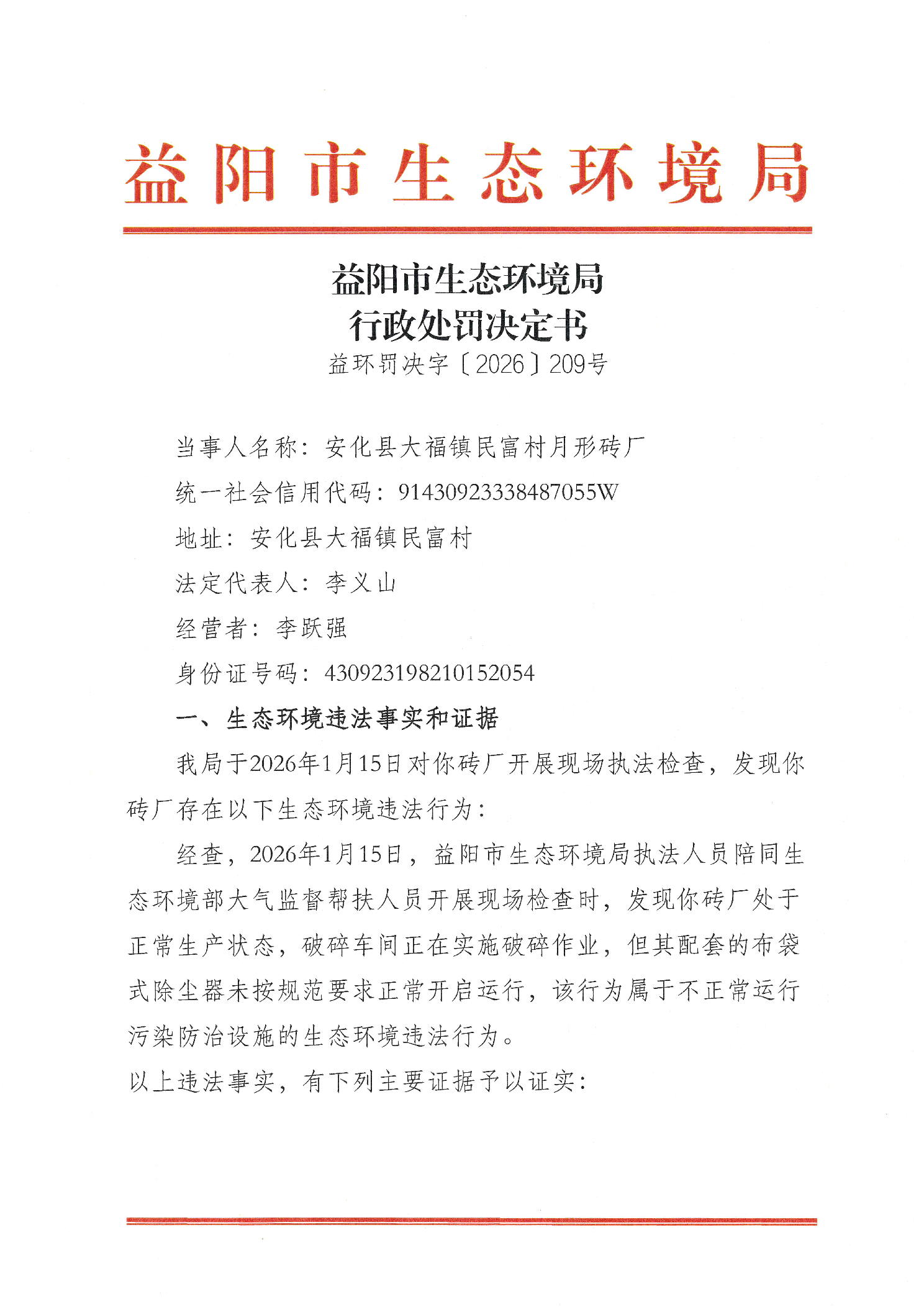 行政处罚决定书 益环罚决字〔2026〕209号 月形砖厂
