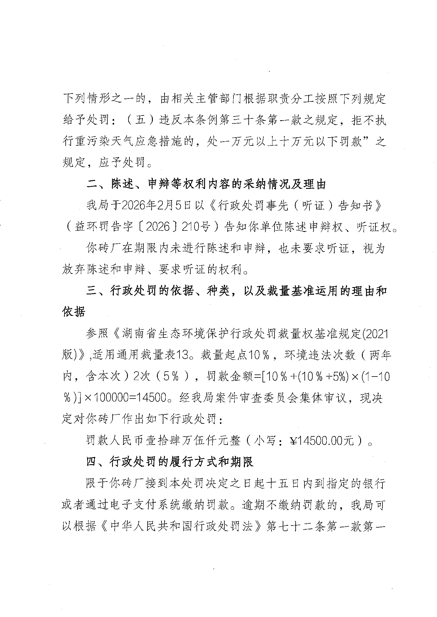 行政处罚决定书 益环罚决字〔2026〕210号 兴盛环保砖厂