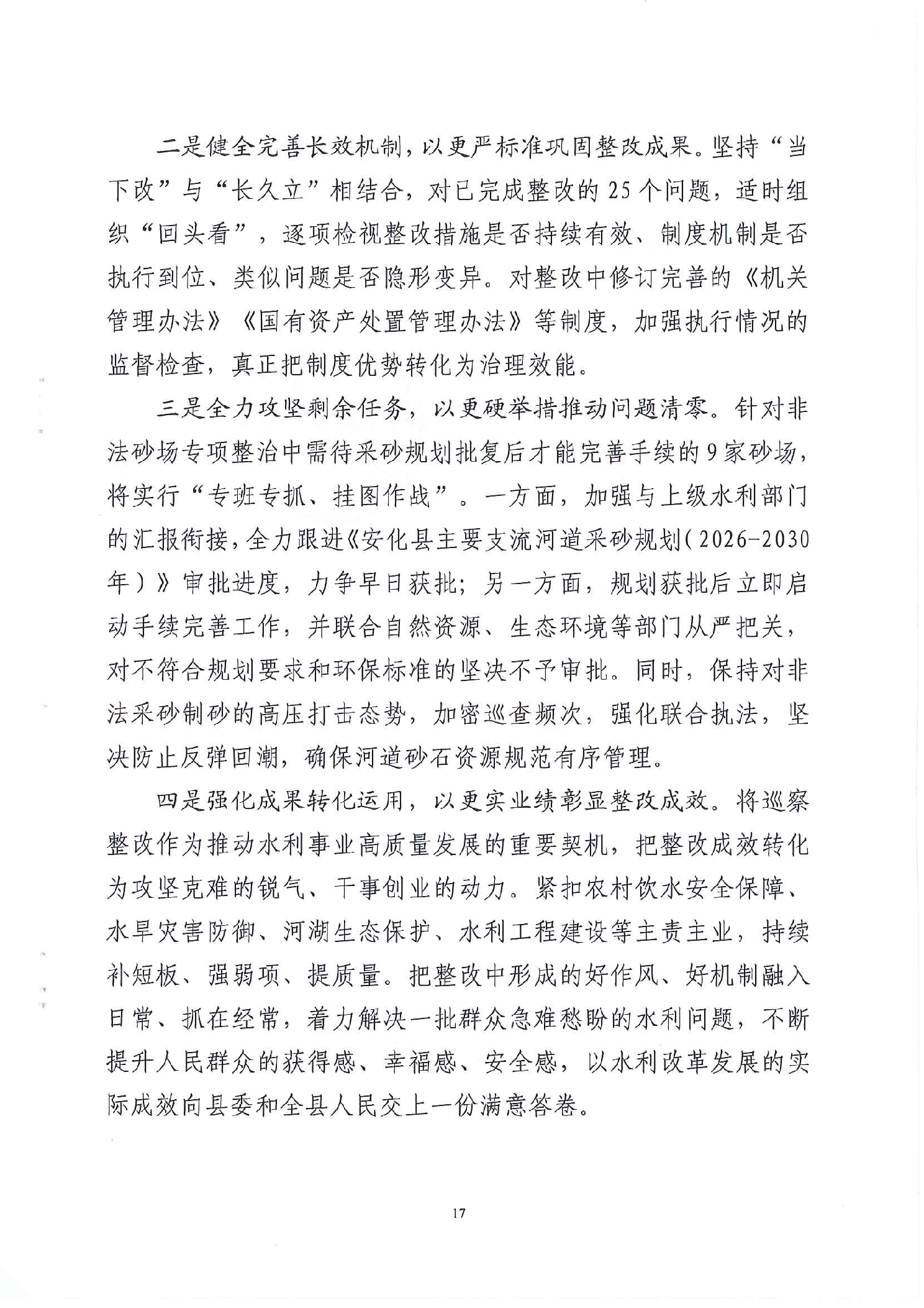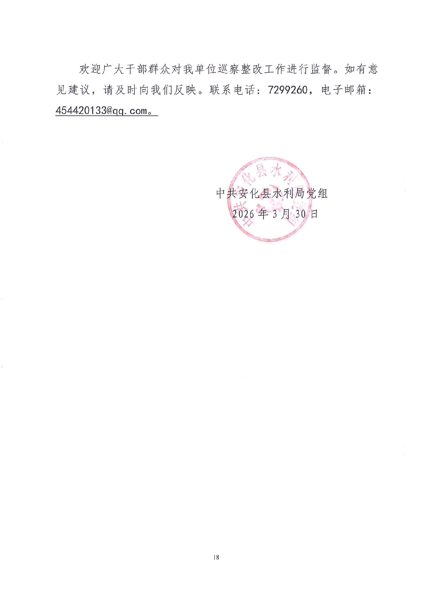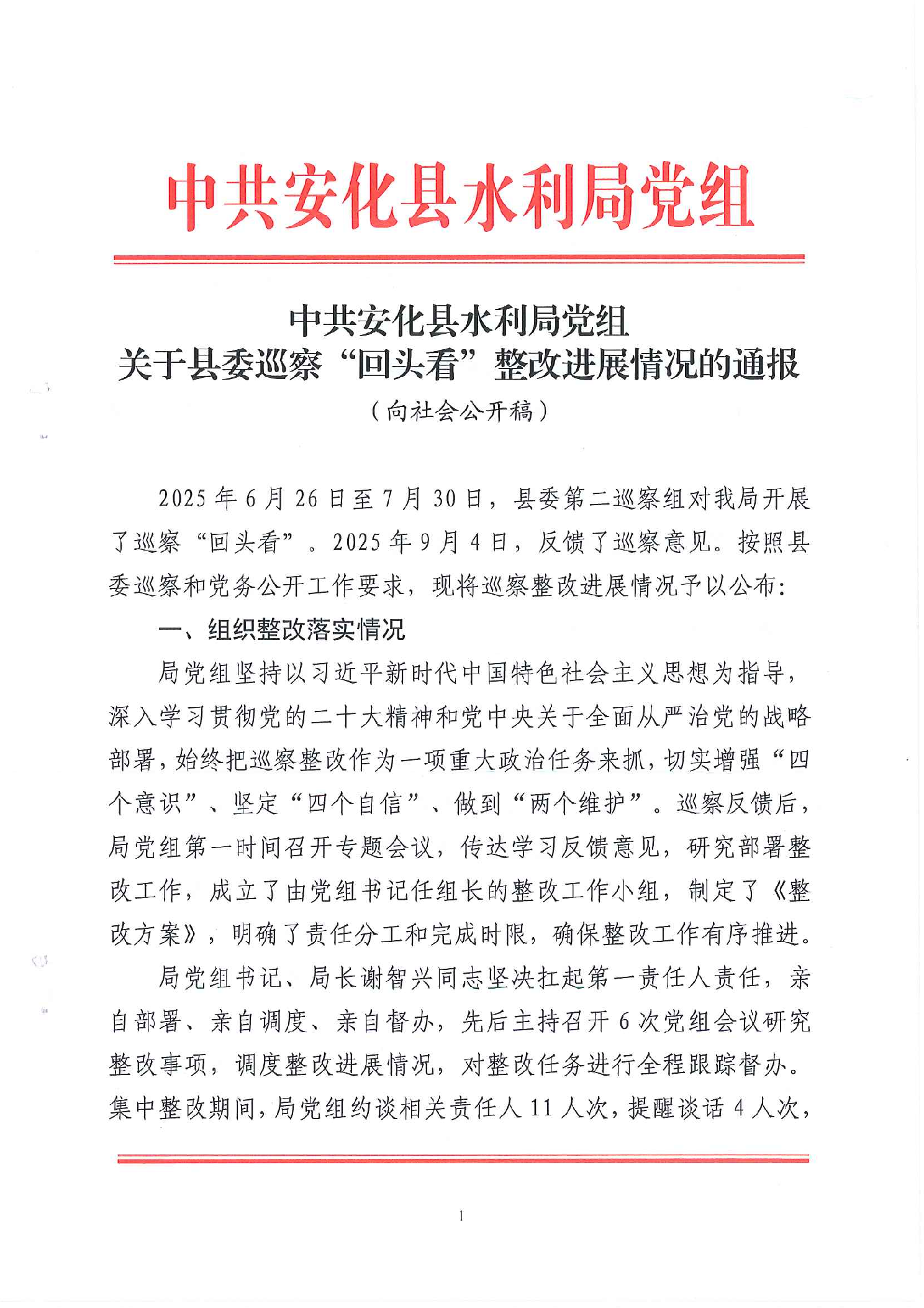 中共安化县水利局党组关于县委巡察“回头看”整改进展情况的通报(向社会公开稿)