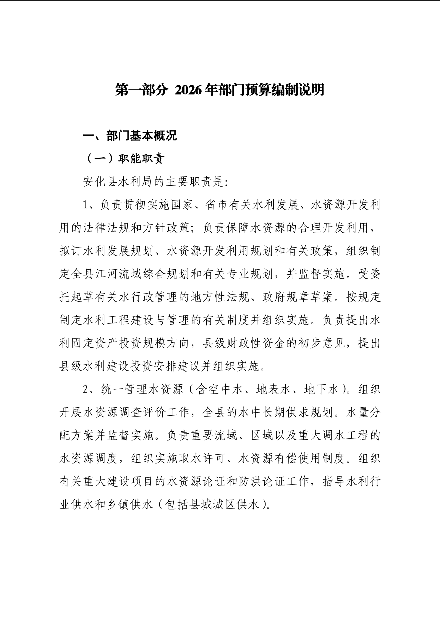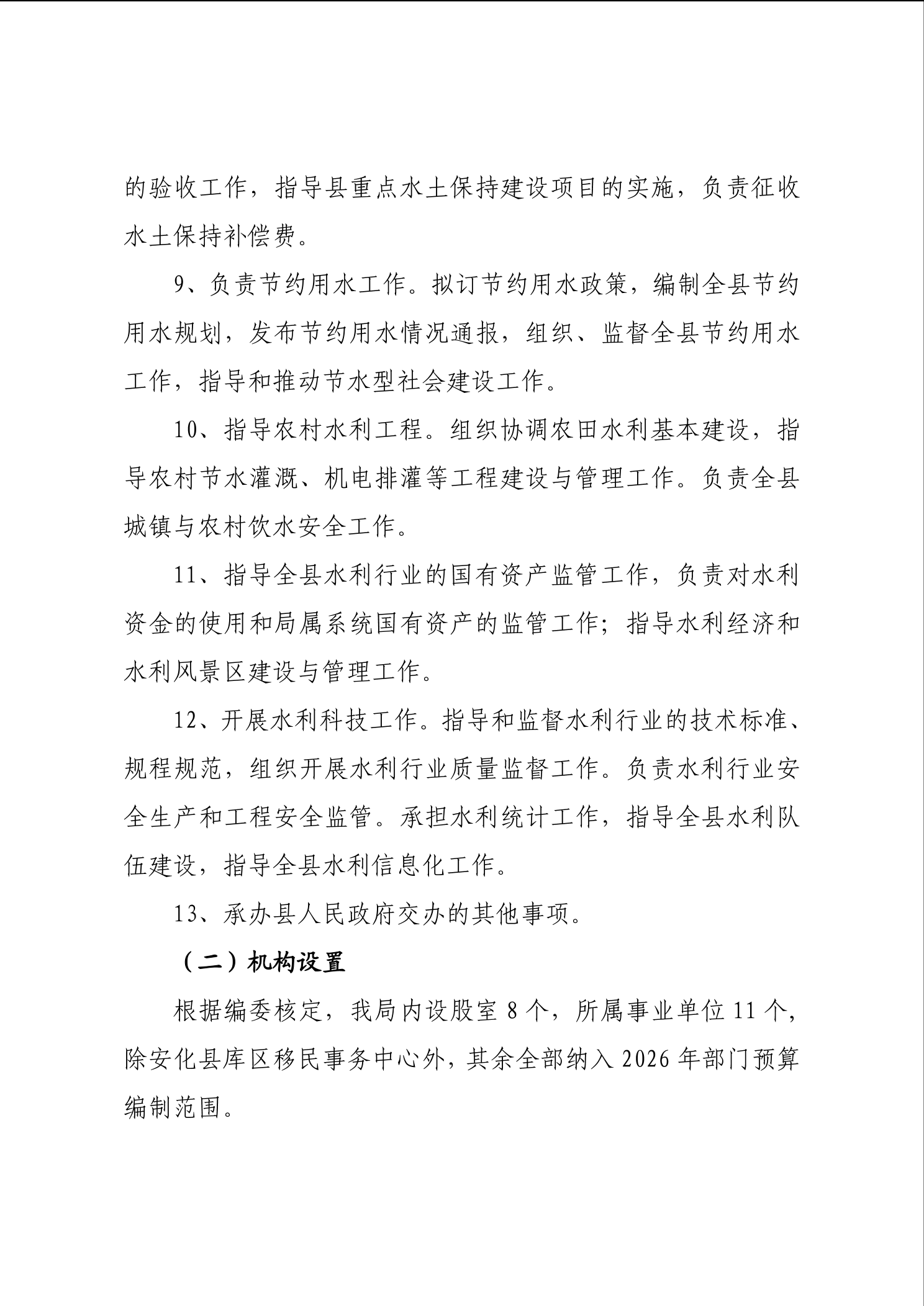 2026年安化县水利局部门预算公开