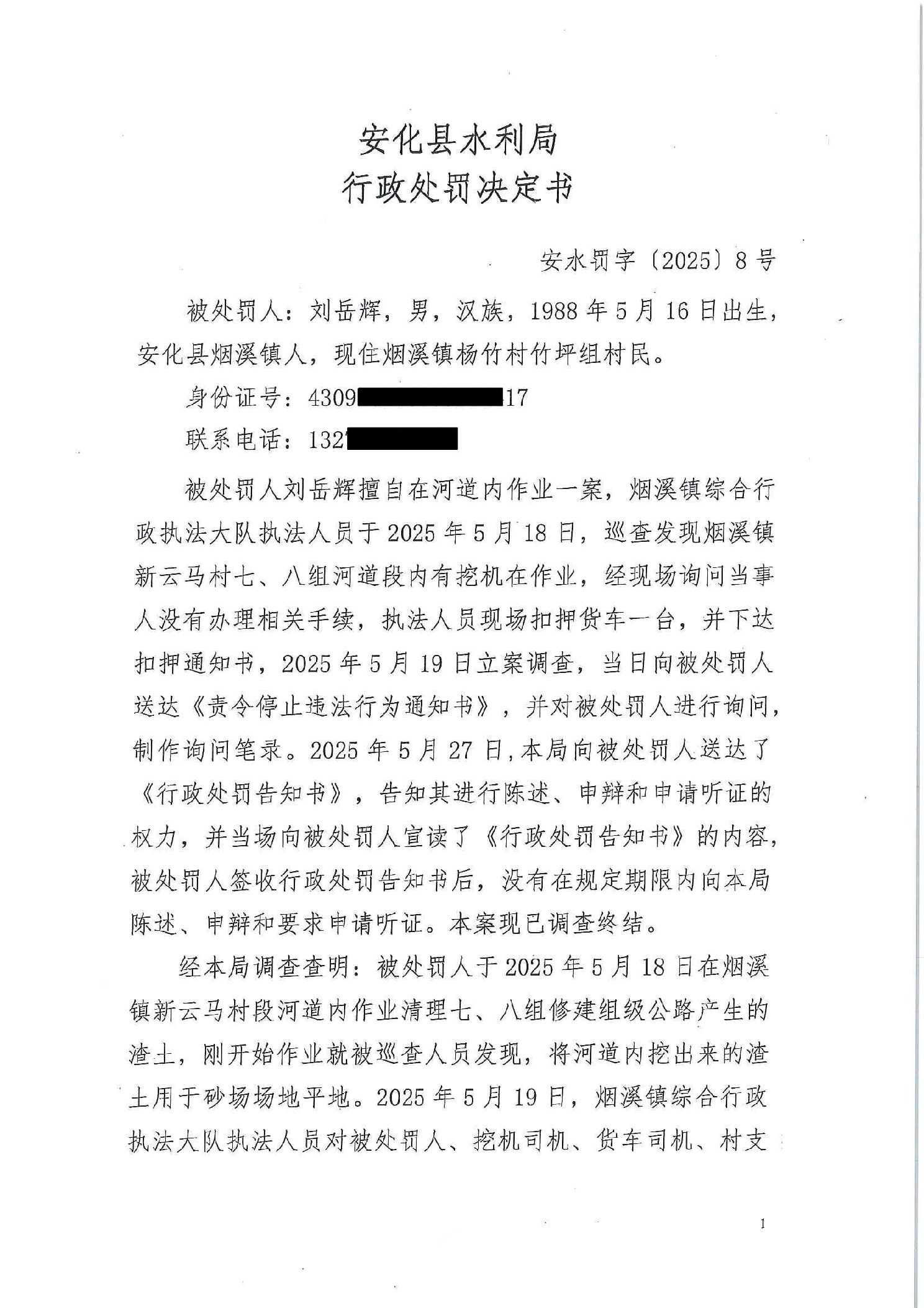 安化县水利局行政处罚决定书 安水罚字(2025)8号